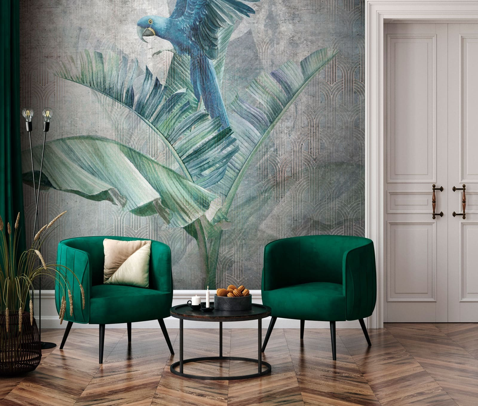 Imagínese entrar en su salón y ser recibido por un impresionante loro azul posado sobre frondosas ramas. Este mural de pared es algo más que decoración: es una escapada tropical. El azul vibrante del loro resalta sobre un fondo de verdes relajantes, haciendo que su espacio se sienta como un oasis en la selva tropical. Es perfecto para cualquiera que ame a los pájaros o que simplemente necesite un poco más de naturaleza en su vida. Imagínatelo en tu comedor, añadiendo un aire fresco a tu café matutino o a tus invitados a cenar, complementando tu estilo único. Además, tiene el toque justo de elegancia con esas hojas de palmera enmarcando la escena. ¿Por qué conformarse con paredes lisas cuando puedes tener una obra de arte que te transporte a un paraíso tropical cada día?