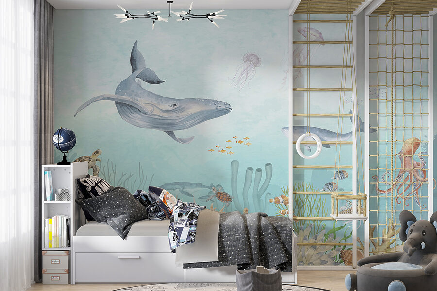 Sumérjase en un mar de maravillas con este cautivador mural de pared “Vida submarina”. Imagine transformar una habitación sencilla en un paraíso oceánico repleto de juguetonas criaturas marinas y vibrantes arrecifes de coral. Perfecto para despertar la imaginación de niños y bebés por igual, este mural trae la magia del azul profundo directamente a su hogar. Aquí hay una ballena gigante, ¡y mira! Un pequeño grupo de peces payaso jugando al escondite entre las anémonas. Ya sea en la habitación infantil de su hijo o en un cuarto de baño caprichoso, añade al instante un toque de aventura y tranquilidad. ¿No puede oír el suave murmullo del agua y el suave movimiento de los tentáculos del pulpo? Instálelo en su espacio y verá cómo se abren de par en par los ojos con deleite (y quizá alguna que otra risita). Es más que un mural, es una escapada submarina sin mojarse, así que adelante, ¡date un chapuzón!