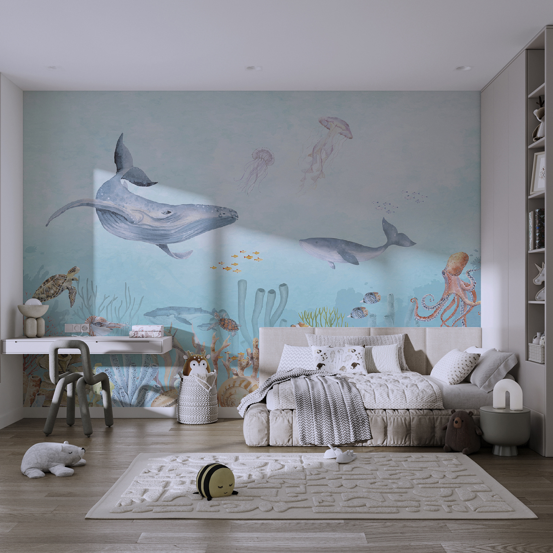 Sumérjase en un mar de maravillas con este cautivador mural de pared “Vida submarina”. Imagine transformar una habitación sencilla en un paraíso oceánico repleto de juguetonas criaturas marinas y vibrantes arrecifes de coral. Perfecto para despertar la imaginación de niños y bebés por igual, este mural trae la magia del azul profundo directamente a su hogar. Aquí hay una ballena gigante, ¡y mira! Un pequeño grupo de peces payaso jugando al escondite entre las anémonas. Ya sea en la habitación infantil de su hijo o en un cuarto de baño caprichoso, añade al instante un toque de aventura y tranquilidad. ¿No puede oír el suave murmullo del agua y el suave movimiento de los tentáculos del pulpo? Instálelo en su espacio y verá cómo se abren de par en par los ojos con deleite (y quizá alguna que otra risita). Es más que un mural, es una escapada submarina sin mojarse, así que adelante, ¡date un chapuzón!
