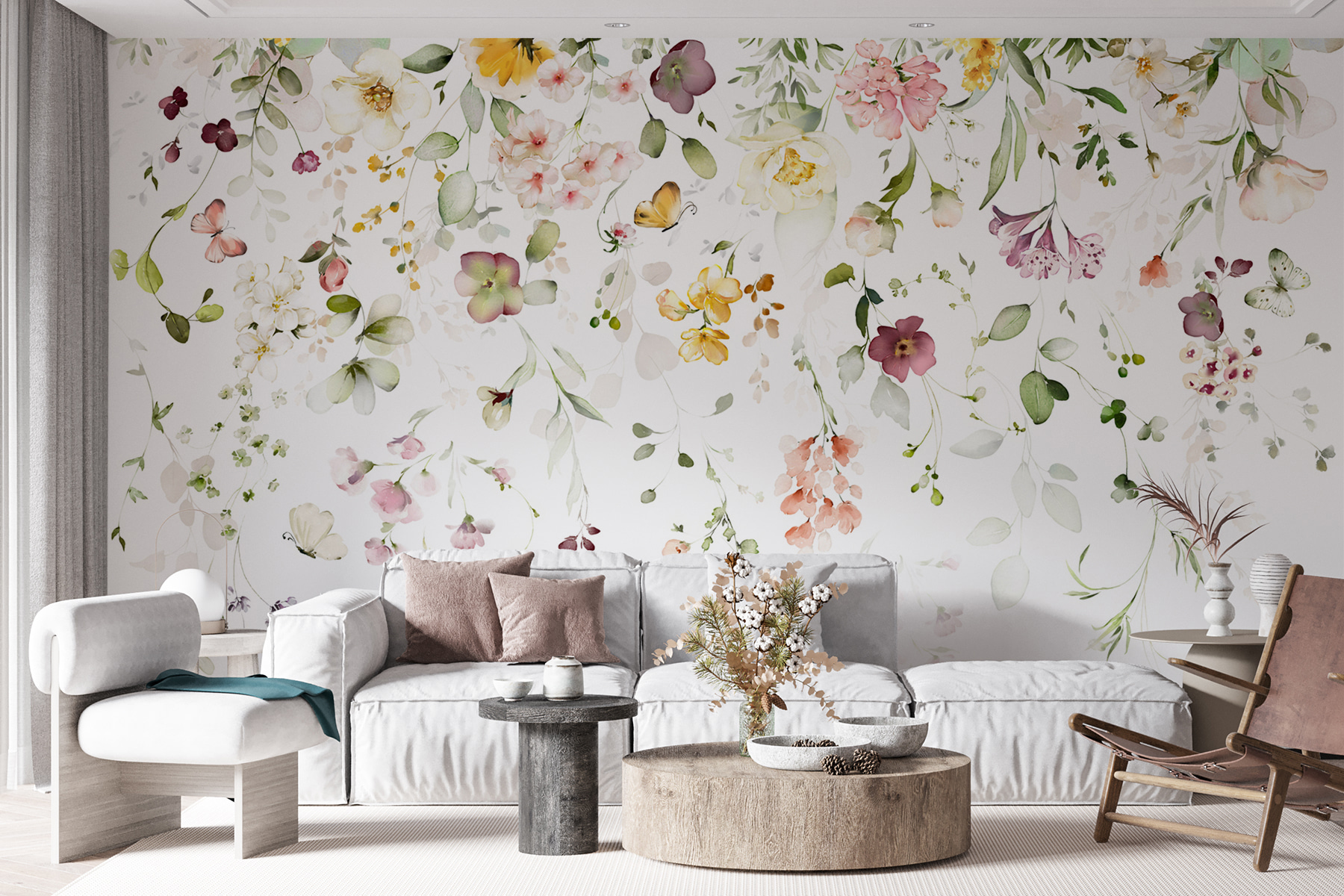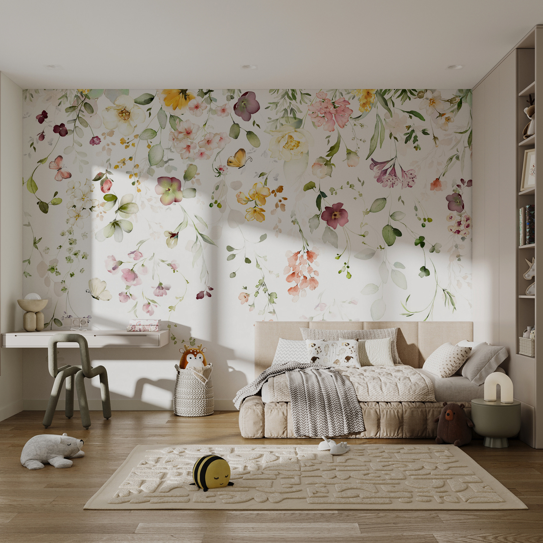 Transforme una pared lisa en un oasis floreciente con estos murales de flores de acuarela que susurran elegancia. Imagínese entrar en una habitación llena de suaves tonos pastel y delicados pétalos que parecen bailar por la pared. Es como llevar un jardín al interior, sin la suciedad ni los molestos insectos. Los tonos suaves crean un ambiente tranquilo, perfecto para relajarse después de un largo día o para despertar la creatividad en un rincón acogedor. Acompáñalo de un poco de vegetación o de un cómodo sillón de lectura, y tendrás una escapada serena en casa. Ya sea para un salón o un dormitorio de ensueño, este mural invita a la calidez y la belleza, haciendo que cualquier espacio resulte más acogedor. Piense en todos los momentos maravillosos que podría pasar en su escapada llena de flores.