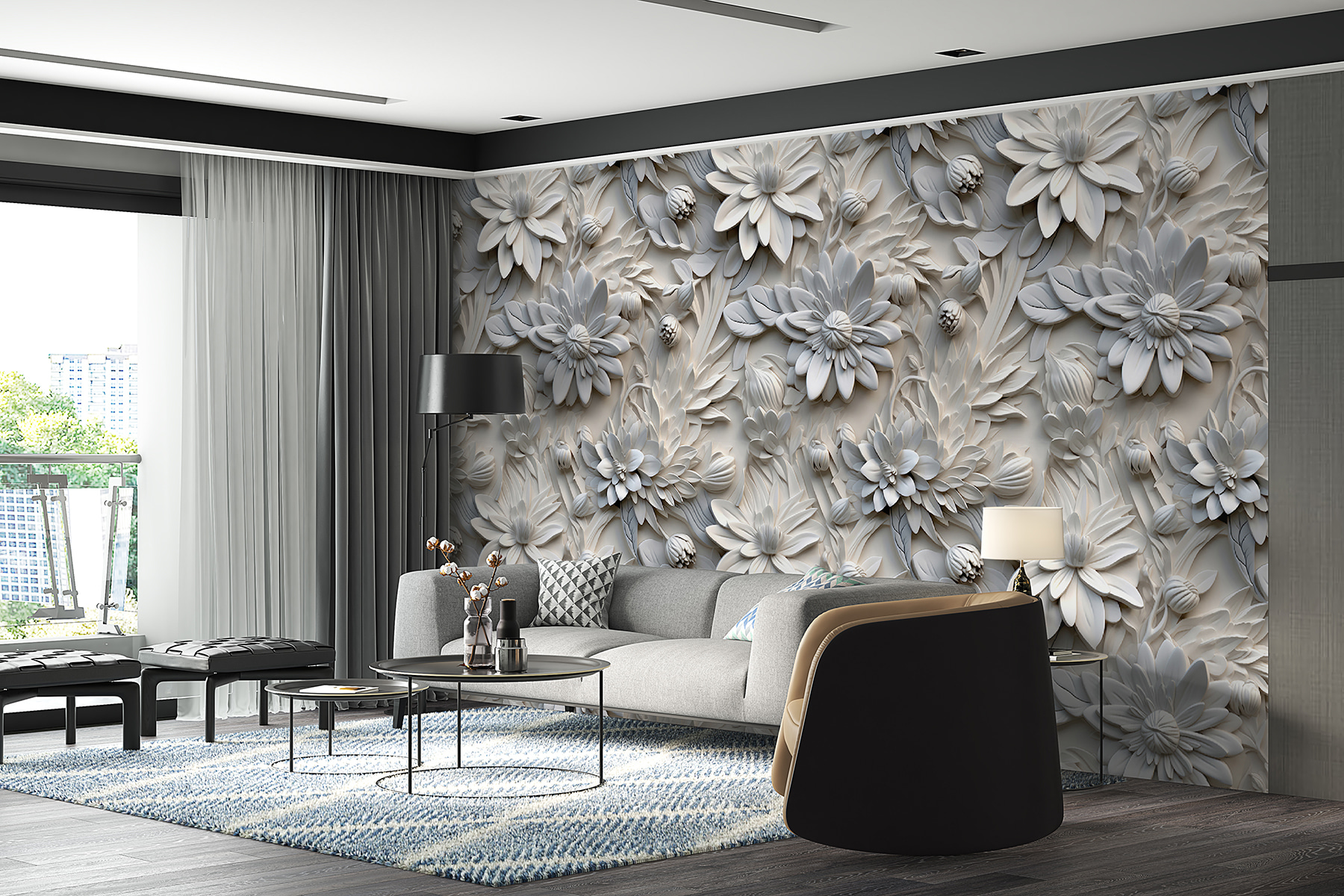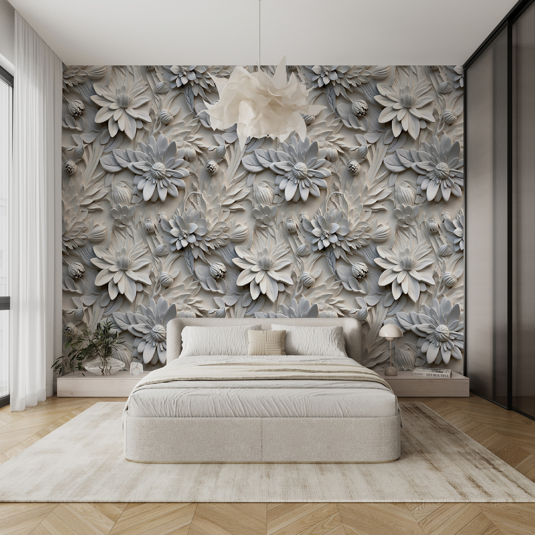 Tienes capas de flores intrincadas, casi como en 3D, que sobresalen lo suficiente como para llamar la atención, pero que se mezclan con suavidad. Es como contemplar una escultura magistral, pero en la pared. Imagina que tomas el café por la mañana y sientes que lo saboreas en tu propio jardín secreto. Es fresco, parece vivo, pero es tranquilo. ¿Me atrevería a decir que es casi terapéutico?