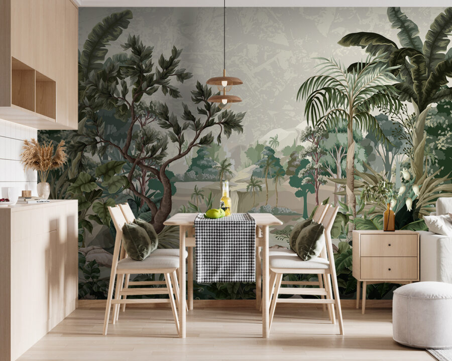 ¿Alguna vez ha querido convertir su salón en un oasis de tranquilidad? Echa un vistazo a este mural de pared: es como una exuberante escapada tropical instantánea. Verdes exuberantes, árboles altísimos y una cascada de ensueño. Es como adentrarse en una selva mágica, directamente desde el sofá. Imagina que te sientas con tu café matutino y te pierdes en este rico tapiz de hojas y tranquilidad. No es sólo un mural, es un pedazo de serenidad. Perfecto para cualquiera que desee un poco de naturaleza en su interior. Créeme, no dejarás de mirarlo.