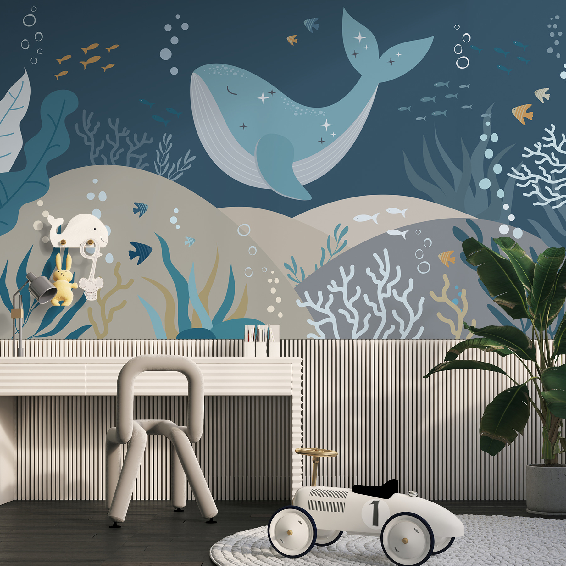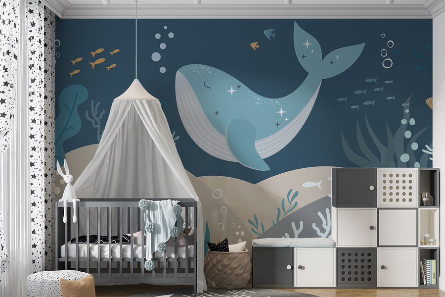 Echa un vistazo a este caprichoso mural de pared, “Ballena azul con estrellas y peces”. En serio, ¡es como sumergirse en un país de ensueño submarino! Perfecto para una habitación infantil, imagina una ballena azul a la deriva, salpicada de estrellas centelleantes y rodeada de peces juguetones. No se sorprenda si los más pequeños se pierden en sus propias aventuras oceánicas. Los suaves tonos azules son como un abrazo tranquilo, tan relajante. Convierte la hora de dormir en un mágico viaje por el mar cada noche con este encantador mural. Es como llevarse un trozo del océano a casa.