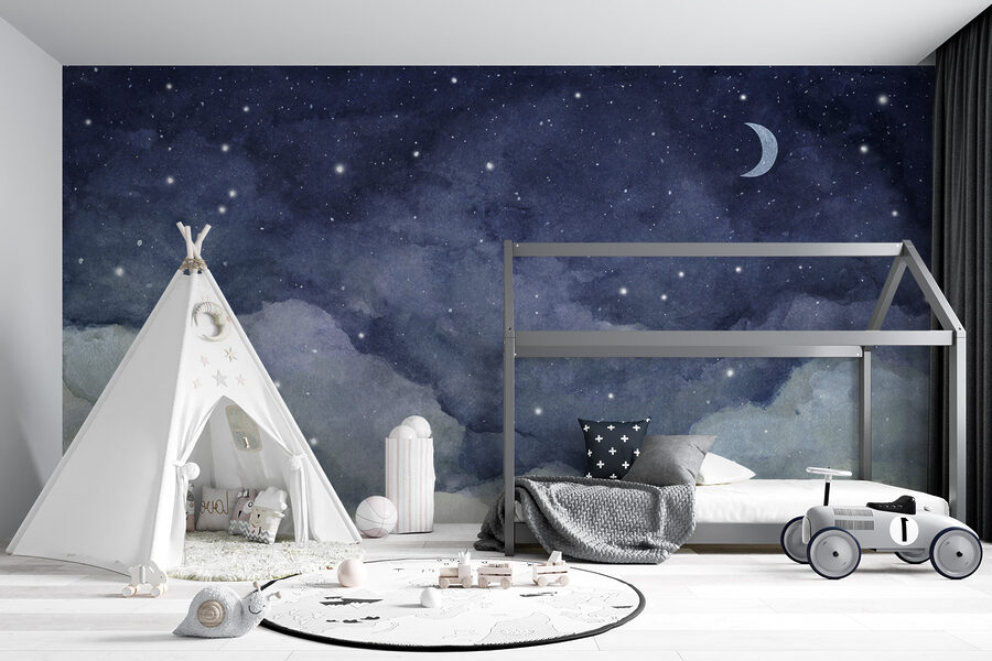 Transforma cualquier pared en una escapada de ensueño con este encantador mural de nubes y estrellas. Imagina un cielo sereno, donde los más pequeños puedan sumergirse en sus propias aventuras, contemplando las nubes suaves y esponjosas y las estrellas centelleantes. Es como tener un trozo del cielo nocturno en tu habitación. Perfecto para un espacio infantil, este mural añade un toque caprichoso que despierta la imaginación. Tanto si se trata de cuentos antes de dormir, de meriendas a medianoche o de soñar despierto, este mural crea una atmósfera acogedora. Convierte esas paredes en un lienzo de maravillas, donde cada mirada invita a una nueva historia. ¡Qué manera tan fantástica de inspirar la creatividad y el amor por el cielo nocturno!