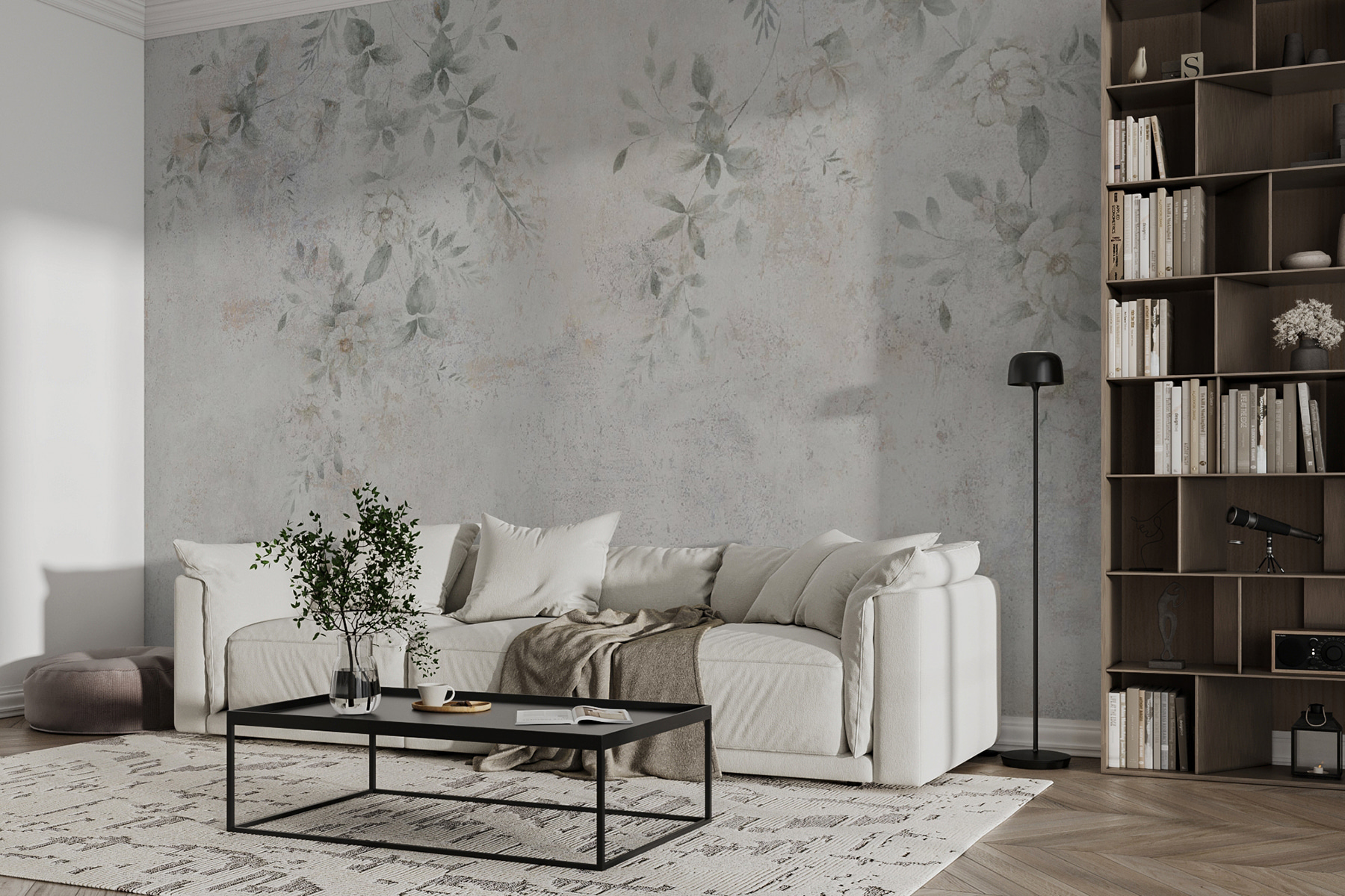 Imagine transformar una pared lisa en un santuario de ensueño con este mural “Pared blanca con hojas”. Perfecto para esos momentos en los que necesita un toque de naturaleza en su hogar. Los delicados patrones de hojas que caen suavemente en cascada sobre el fondo de hormigón desprenden una sutil sensación de elegancia, pero resultan totalmente naturales. Encaja a la perfección tanto si buscas un estilo moderno y minimalista como algo más vintage. Imagínate tomando el café por la mañana, como si estuvieras en un jardín sereno sin salir a la calle. Es como un refugio de paz, justo en la pared. Además, este mural puede añadir un toque refrescante a cualquier habitación, desde el salón hasta su rincón de lectura favorito. Relájese, descanse y deje que este mural traiga un soplo de aire fresco a su espacio.