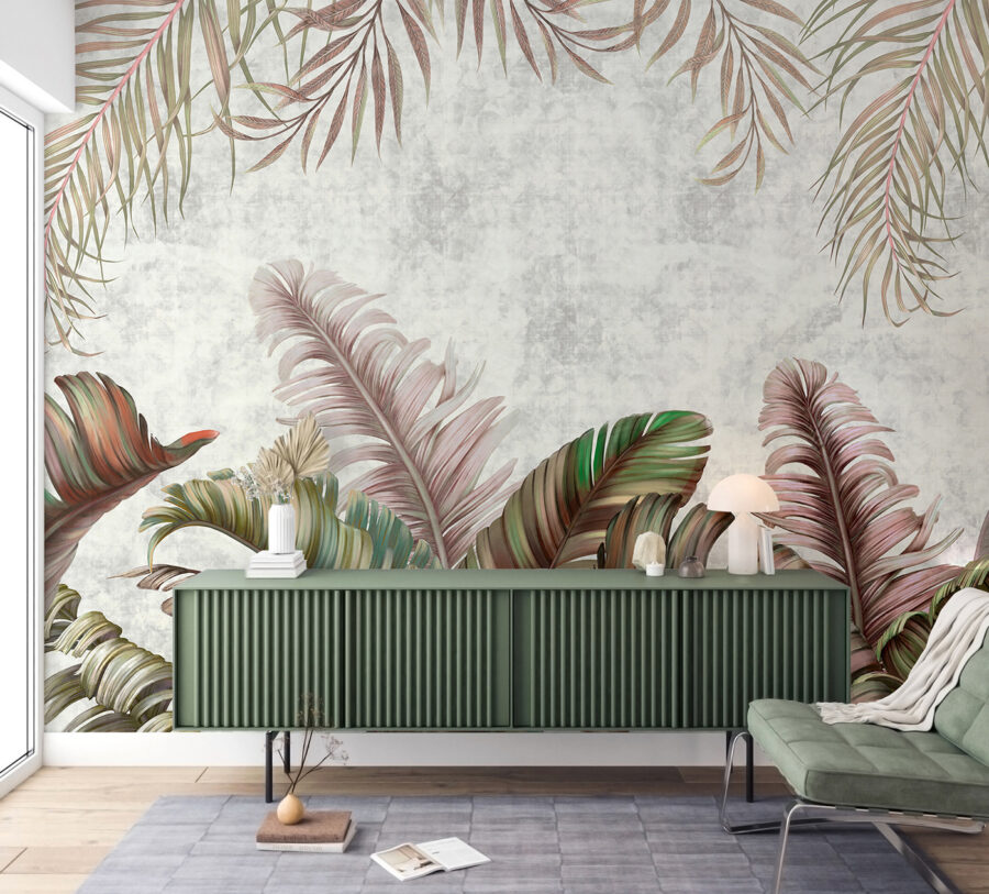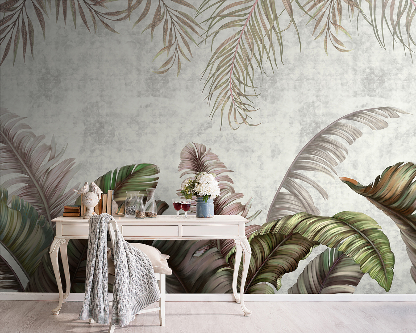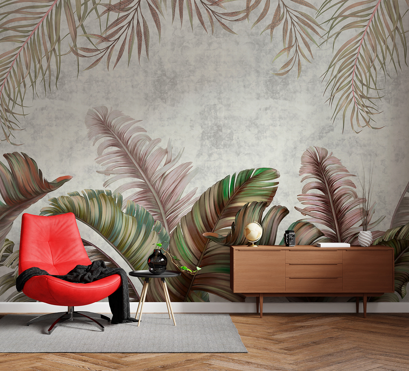 Transforme cualquier habitación con el impresionante “Mural de pared Hojas tropicales con tonos pastel”. Este mural invita a un ambiente exuberante que es a la vez calmante y refrescante, perfecto para soñar despierto o acurrucarse con un buen libro. Imagínese tomando un café en un rincón iluminado por el sol, rodeado de hojas de gran tamaño en tonos verdes suaves y rubor, haciendo que cada momento se sienta como unas mini-vacaciones. Es como traer un trozo de paraíso al interior, sin los mosquitos. Ideal para una acogedora sala de estar o una animada pared de galería, este mural aporta personalidad y calidez. Así que, ¿por qué no dar a esas paredes un poco de amor?
