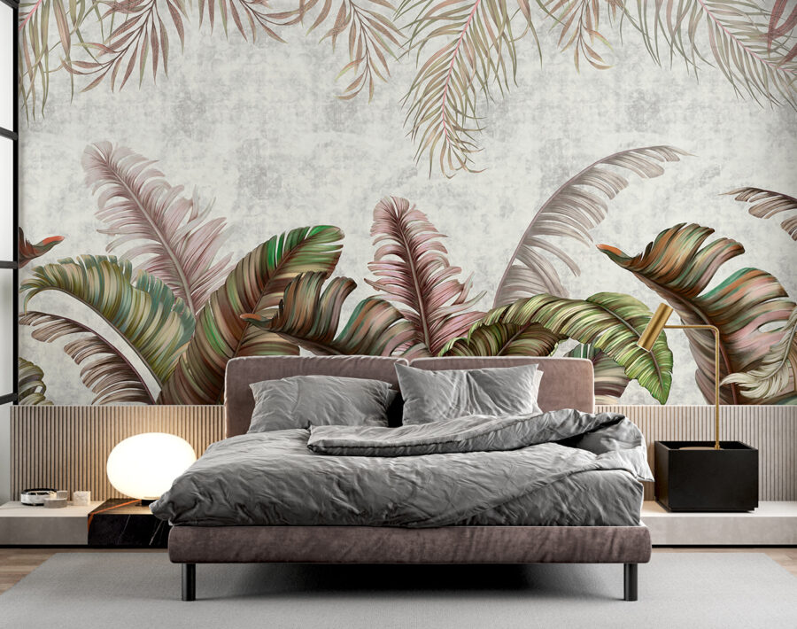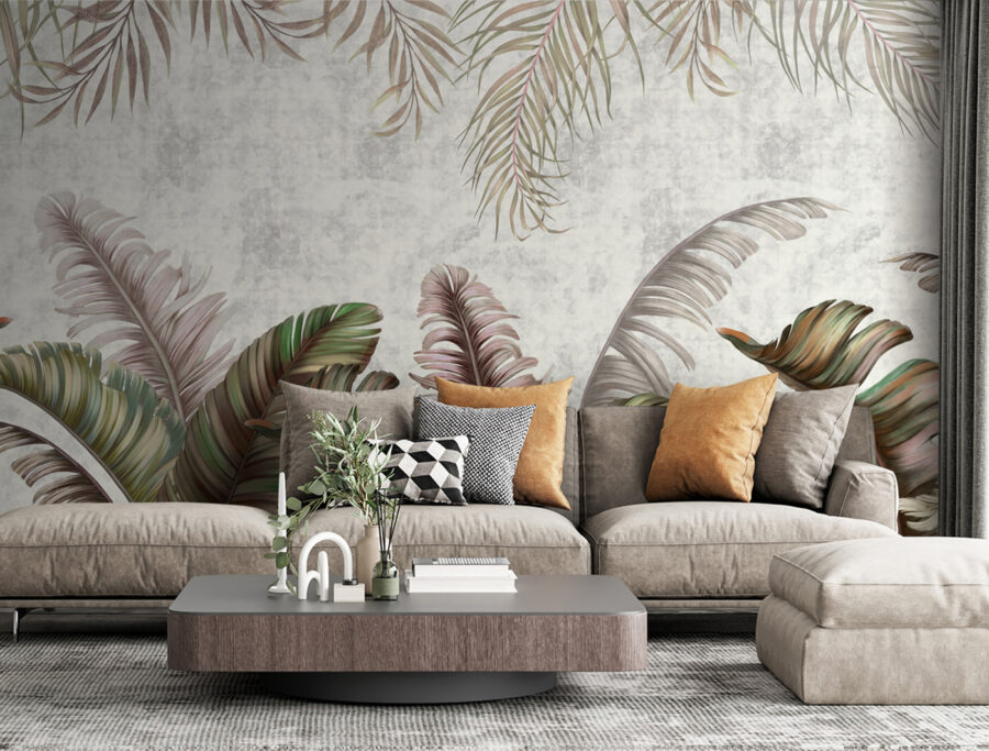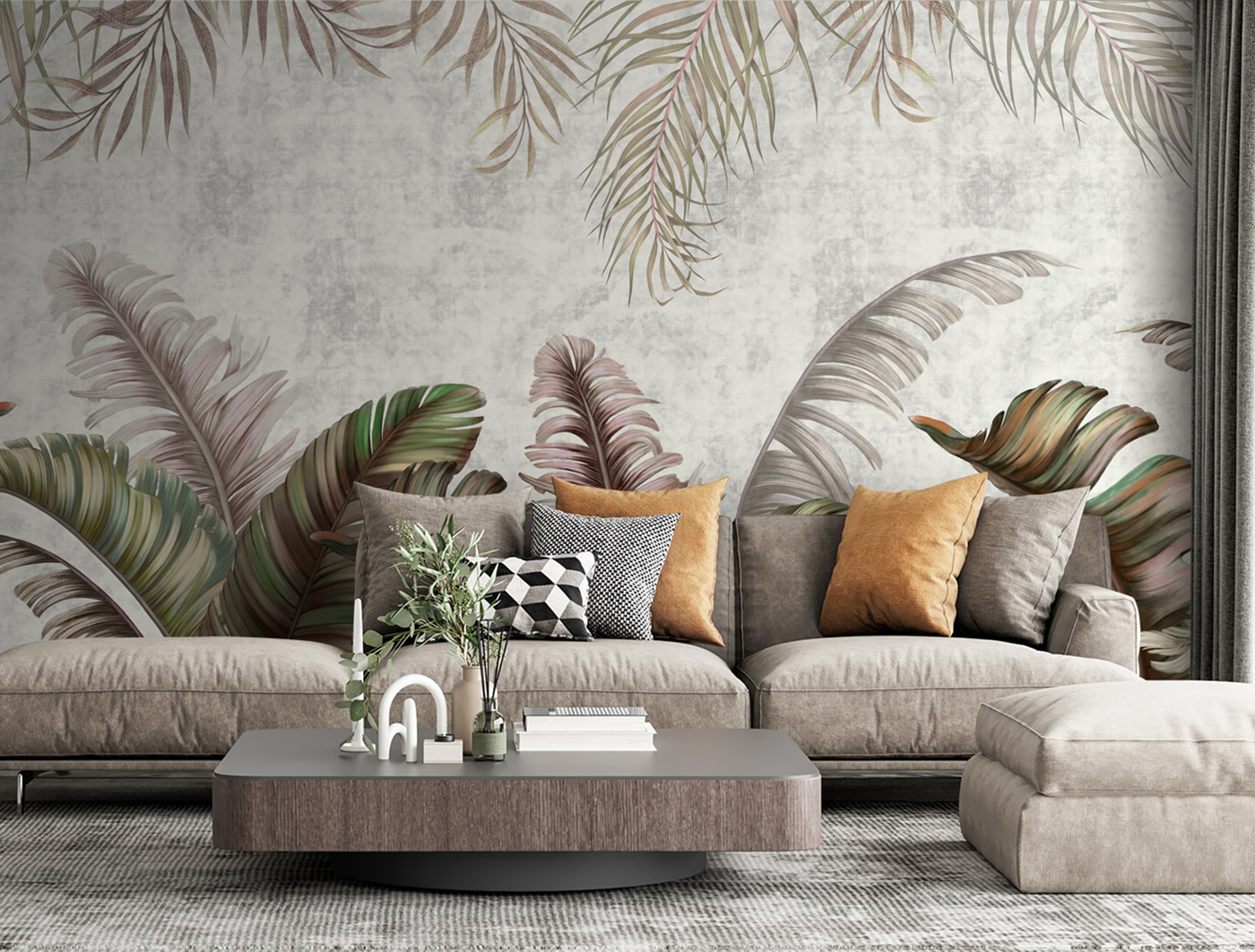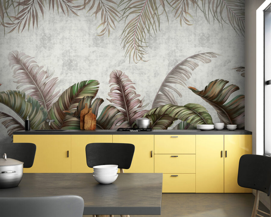 Transforme cualquier habitación con el impresionante “Mural de pared Hojas tropicales con tonos pastel”. Este mural invita a un ambiente exuberante que es a la vez calmante y refrescante, perfecto para soñar despierto o acurrucarse con un buen libro. Imagínese tomando un café en un rincón iluminado por el sol, rodeado de hojas de gran tamaño en tonos verdes suaves y rubor, haciendo que cada momento se sienta como unas mini-vacaciones. Es como traer un trozo de paraíso al interior, sin los mosquitos. Ideal para una acogedora sala de estar o una animada pared de galería, este mural aporta personalidad y calidez. Así que, ¿por qué no dar a esas paredes un poco de amor?