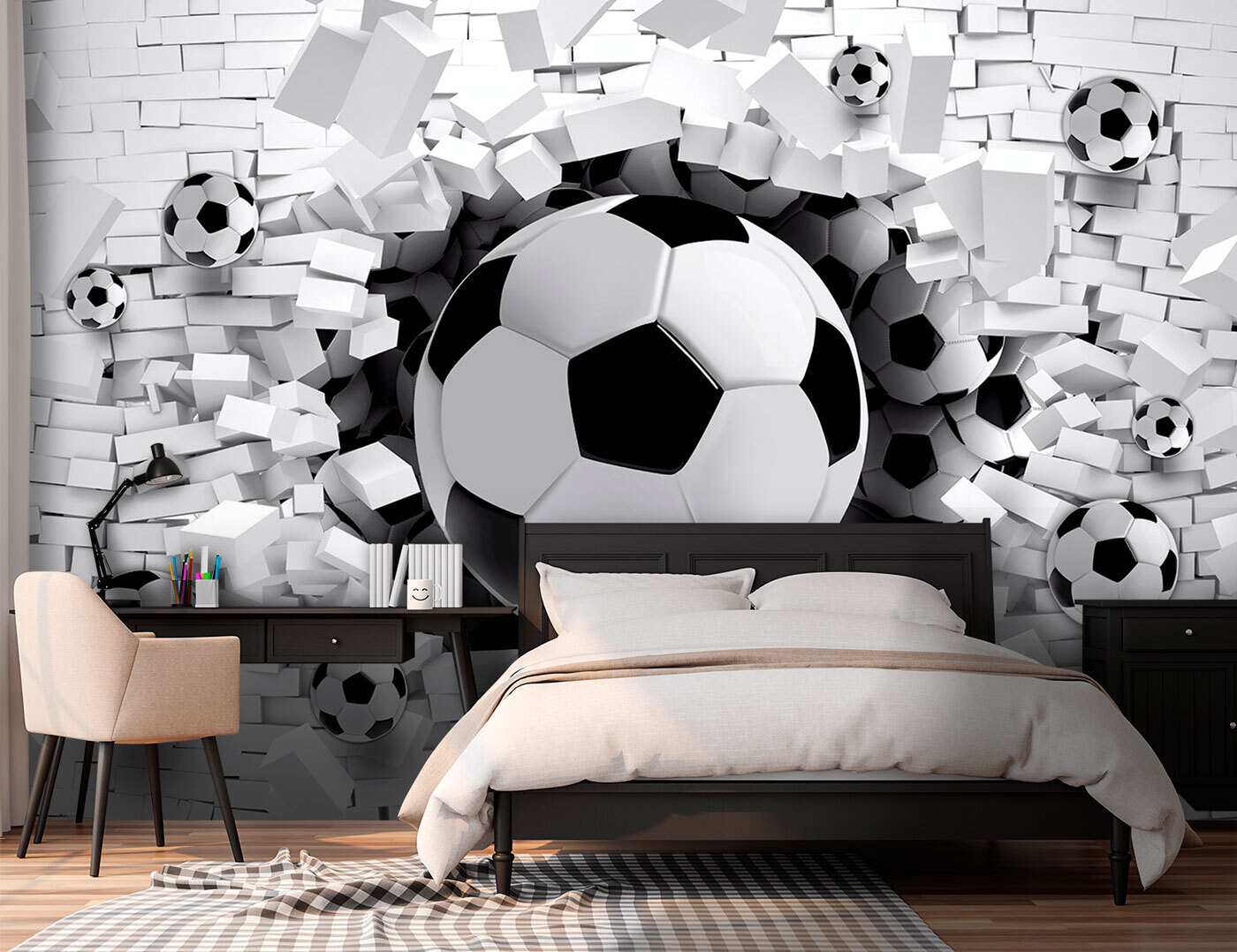 Transforma cualquier habitación en un paraíso deportivo con este llamativo mural de pared que muestra un balón de fútbol en blanco y negro irrumpiendo en la pared. Es como si el espíritu del fútbol hubiera tirado la puerta abajo y se hubiera invitado a entrar. Perfecto para los niños que sueñan con marcar el gol de la victoria o para cualquiera a quien le guste la emoción del fútbol. Imagina las sonrisas y la emoción que provocará: cada mirada es como estar en el campo, esquivando defensas y celebrando esos goles épicos. Su diseño sencillo pero llamativo hace que encaje fácilmente en cualquier espacio, así que tanto si se trata de una sala de juegos como de un dormitorio, este mural aporta energía y diversión. Además, es el telón de fondo perfecto para esas noches de juego en familia. Prepárate para darle un toque especial a tu decoración.