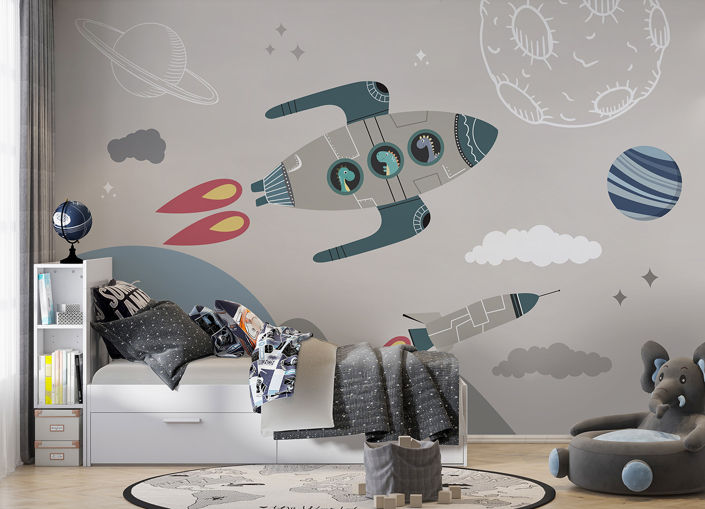 Fotomurales Los dinosaurios exploran el espacio en cohetes Fotomurales Los dinosaurios exploran el espacio en cohetes