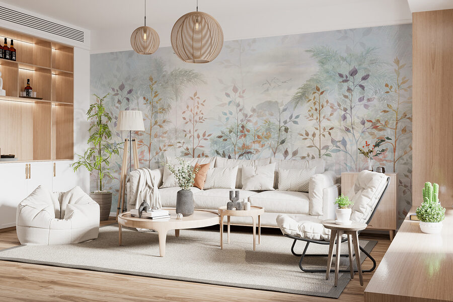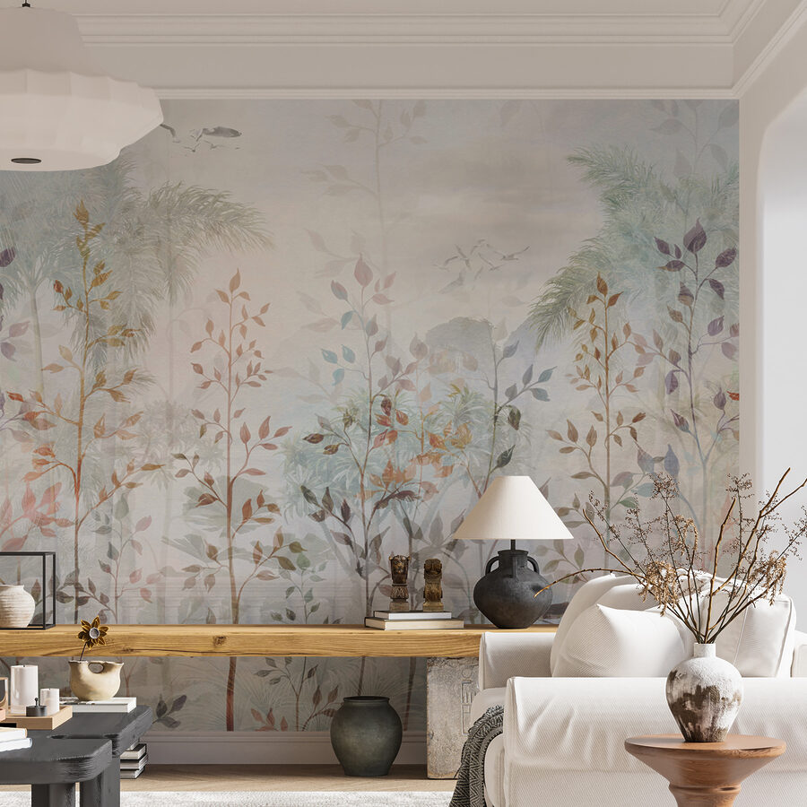 Transforma cualquier habitación en una escapada de ensueño con el mural “Nature’s Pastel Dreamscape in Mist”. Esta impresionante obra de arte invita a la tranquilidad de la naturaleza en el interior, con delicados colores pastel que bailan suavemente a través de las paredes. Imagínese tomando el café de la mañana rodeado del susurro de las hojas y el suave balanceo de las plantas. Es como tener un jardín sereno en casa. Cada mirada te atrae y te hace preguntarte si podrías atravesar el mural y pasear entre esos árboles. Perfecto para espacios que buscan un toque de serenidad y una chispa de fantasía. ¿Quién iba a decir que la decoración de pared podía tener tanta vida?