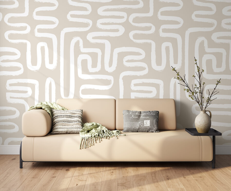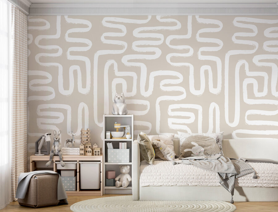 Entre en un mundo de elegancia lúdica con este mural, en el que líneas blancas abstractas bailan sobre un fondo beige suave. Es como tener una galería de arte contemporáneo en el salón de tu casa, ¡sin pagar la entrada! Imagínese tomando su café matutino mientras contempla esas caprichosas formas, que de algún modo consiguen despertar la inspiración y calmar la mente al mismo tiempo. Los invitados se sentirán atraídos y las conversaciones fluirán sin esfuerzo. Cada mirada revela un nuevo detalle, como una pequeña búsqueda del tesoro. Perfecto para salones, despachos o cualquier espacio que necesite una dosis extra de creatividad.