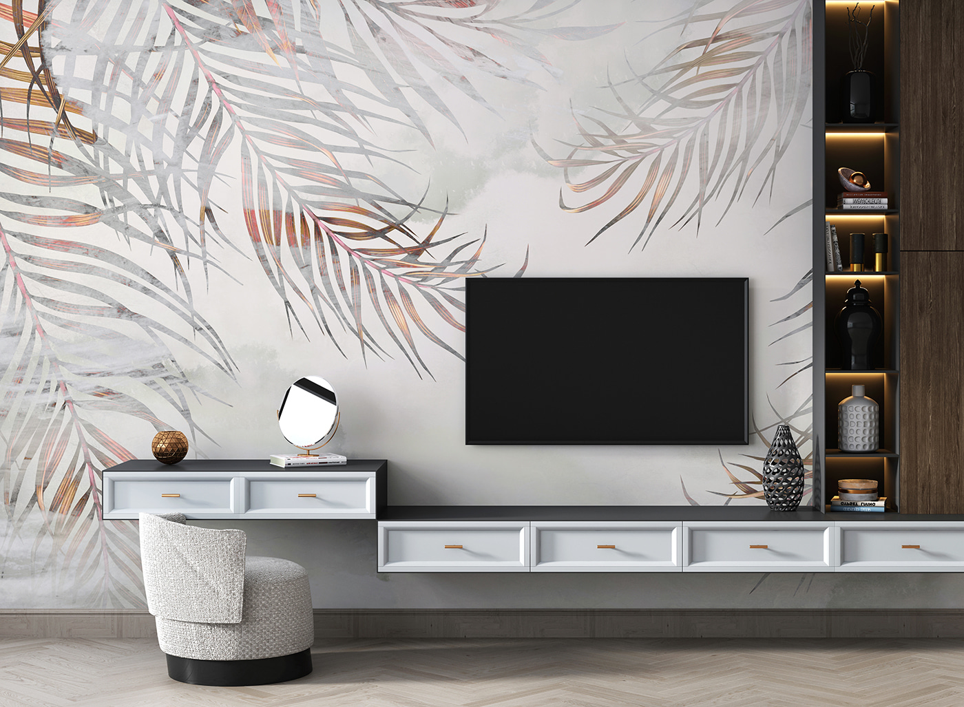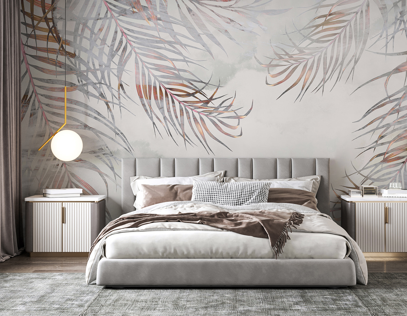 Transforme cualquier espacio con este impresionante mural de pared con elegantes hojas de palmera en tonos suaves. Imagínese entrar en un paraíso tropical cada vez que entre en la habitación. Los colores suaves aportan un ambiente relajante que puede hacer que se olvide de esa pila de ropa sucia que espera en la esquina. Es como tener la naturaleza dentro de casa, sin los bichos, claro. Perfecto para una sala de estar o un acogedor rincón de lectura, este mural añade un toque de serenidad y estilo tan agradable a la vista. Cada mirada puede hacer soñar con playas bañadas por el sol y tardes tranquilas. ¿Qué más se puede pedir?