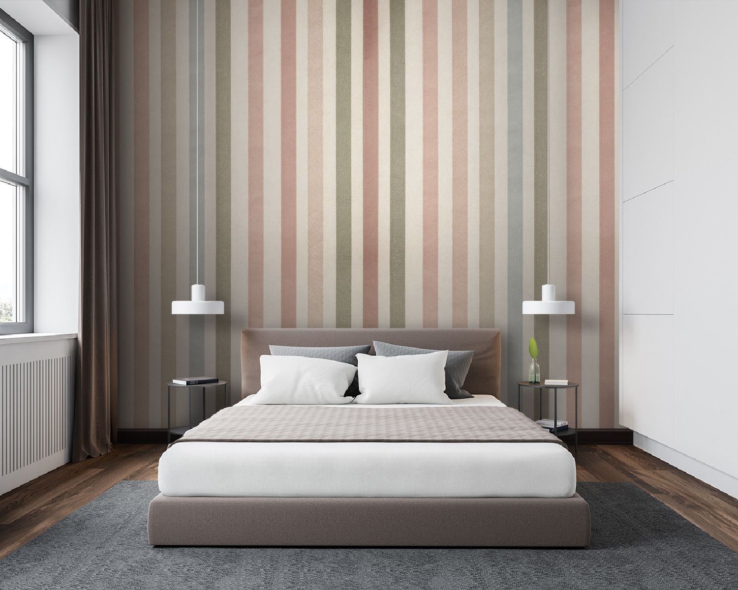 Tiene la capacidad mágica de hacer que una habitación parezca más alta, más aireada, como si estuvieras soñando despierto. Además, ¿a quién no le gustan las rayas? Son tan atemporales y modernas a la vez, que hacen un guiño al diseño clásico sin dejar de sentirse frescas. Perfecto para quienes adoran un aspecto elegante y sobrio con un toque caprichoso. Este mural no es sólo decoración, también levanta el ánimo. Así que, ¿por qué no abrazar un poco de magia pastel y dejar que esas rayas trabajen su encanto?