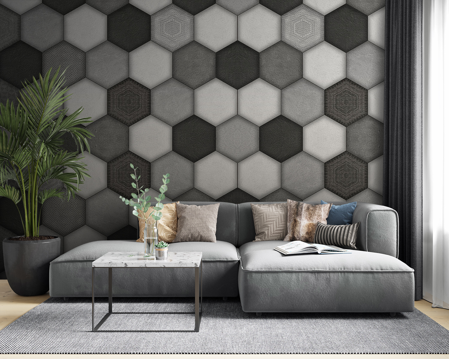 ¿Quiere dar un toque de modernidad a su espacio? Piense en el mural Hexágono gris, con su elegante efecto 3D. Es como entrar en un elegante país de las maravillas geométricas. Con un fondo blanco limpio, los hexágonos grises añaden profundidad y estilo sin ser demasiado recargados. Imagina que entras en tu habitación todos los días y te sientes como en un loft urbano de moda. Además, es perfecto para decorar cualquier pared, desde salones hasta despachos. Sus amigos quedarán impresionados, ¡garantizado! Este mural es toda una declaración de intenciones sin ni siquiera intentarlo: sofisticación sencilla, justo en la pared.