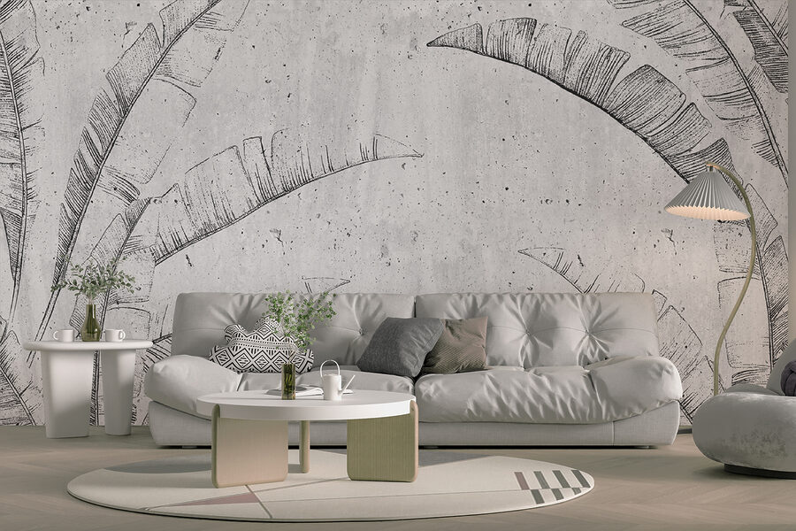 Imagínese esto en su pared: “Patrón de hojas tropicales sobre hormigón”. Un mural que grita a la vez elegancia urbana y un pequeño oasis en la selva. Es perfecto si lo que buscas es dar a un espacio un aire desenfadado pero con los pies en la tierra. Imagínese tomando su café de la mañana, viendo el juego de luces a través de esas líneas de hojas de palmera, y sintiendo ese ambiente fresco y concreto. Es como una pequeña escapada exótica, pero sin necesidad de un billete de avión. Casi esperas oír los pájaros tropicales, ¿verdad? Este mural es una atracción relajada, ideal para cualquiera que adore esa mezcla de naturaleza y estilo moderno.