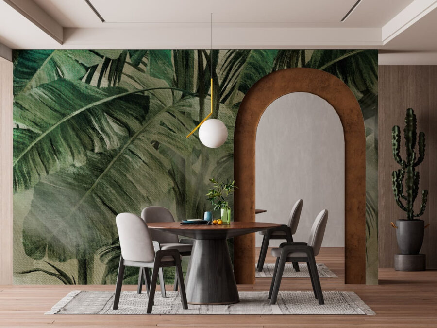 Imagínese que se despierta y lo primero que ve es la luz del sol atravesando exuberantes hojas verdes, justo ahí, en su pared. Este mural es como si hubieras trasplantado un trozo de paraíso tropical a tu casa. Ahora, no necesitas irte de vacaciones para sentir esas vibraciones isleñas: lo tienes ahí mismo, en tu salón, dormitorio o donde decidas colocarlo. No es una obra de arte cualquiera; es una transformación. Las grandes hojas de palmera casi se balancean, proyectando suaves sombras que parecen bailar a la luz del sol. Te parecerá oír el canto de los pájaros. Perfecto para cualquiera que haya soñado con estar rodeado de naturaleza, incluso un lunes por la mañana.
