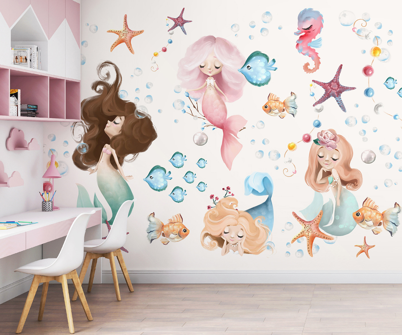 Imagínese esto: un delicioso mural lleno de caprichoso encanto. Una niña de dibujos animados con una preciosa melena castaña flota tranquilamente en un mundo submarino de ensueño. Suaves tonos pastel y juguetones amigos marinos (alegres peces y graciosas estrellas de mar) se arremolinan en una danza mágica. Ya sea en la habitación de tu pequeño o en un espacio que necesite un toque de alegría, este mural transforma las paredes lisas en una encantadora escena de cuento. Es como traer un poco de fantasía a la puerta de casa, ¡solo hay que ver cómo se iluminan esos ojitos! 🌊✨