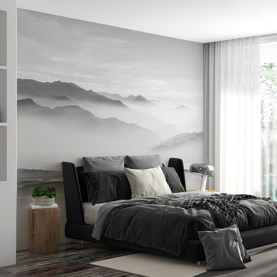 Los sutiles tonos grises crean una atmósfera tranquilizadora, casi invitándote a tomar una taza de té caliente mientras sueñas despierto por la ventana. En un momento estás en medio del ajetreo de la ciudad y al siguiente te pierdes en la tranquila bruma de la montaña. Es un gran tema de conversación, y ¿quién no querría compartir su pared con un poco de la magia de la naturaleza? Este mural no es sólo una cuestión de decoración; se trata de crear un espacio que parezca un soplo de aire fresco.