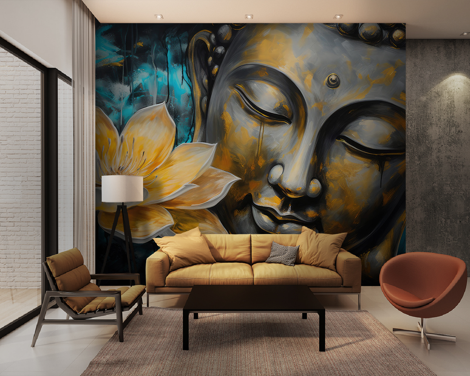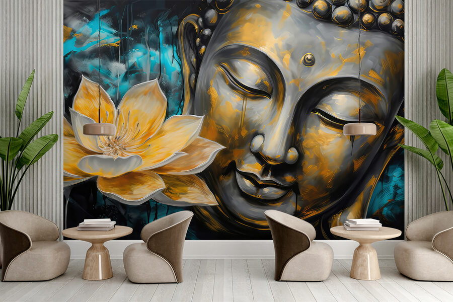 Imagine entrar en su habitación y ser recibido por este majestuoso mural cada día. El “Mural de pared Pintura de una flor amarilla” no es sólo una pieza para paisajes urbanos, se trata de convertir una pared normal en un lienzo inspirador. Los vibrantes pétalos amarillos parecen brillar sobre un fondo hipnotizador, ofreciendo un estallido de color y una pizca de serenidad. Hay algo mágico en la forma en que la flor y el rostro sereno fluyen juntos, casi como si te invitaran a respirar hondo y relajarte.
