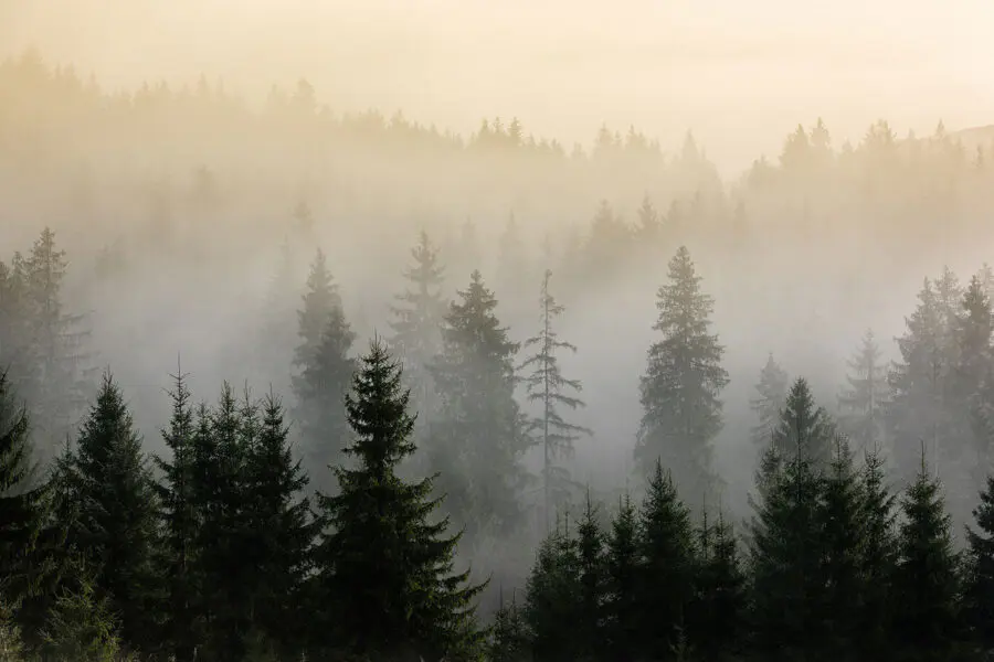 1 valoración en Fotomurales Grupo de árboles en la niebla