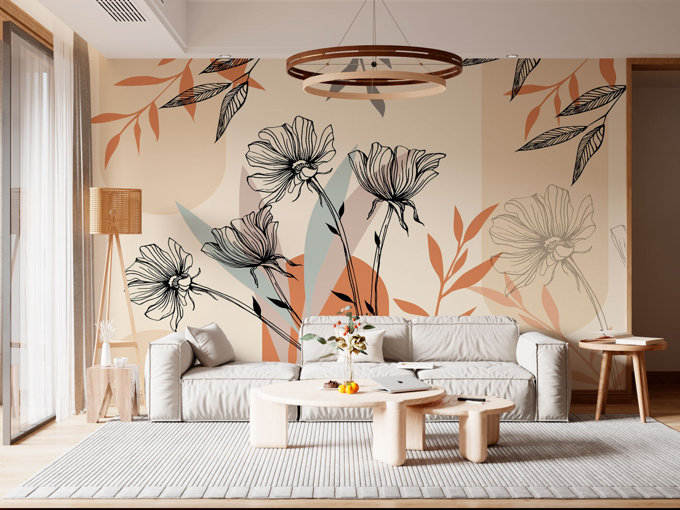 Imagine entrar en una habitación y ser recibido por este impresionante mural de pared: “Dibujo en blanco y negro de una flor”. Perfecto para quienes adoran el papel pintado de diseño y los murales de pared populares. Tiene un aire chic sin esfuerzo. Delicadas flores en blanco y negro bailan sobre un lienzo de tonos suaves, añadiendo elegancia sin abrumar su espacio.
