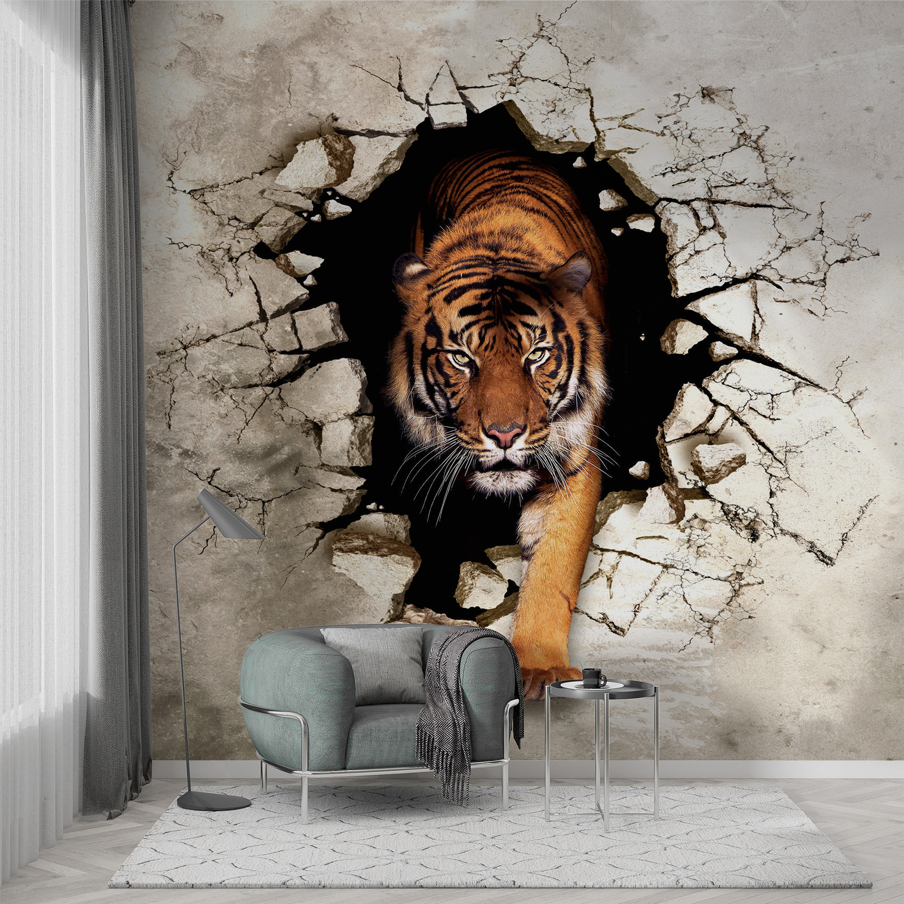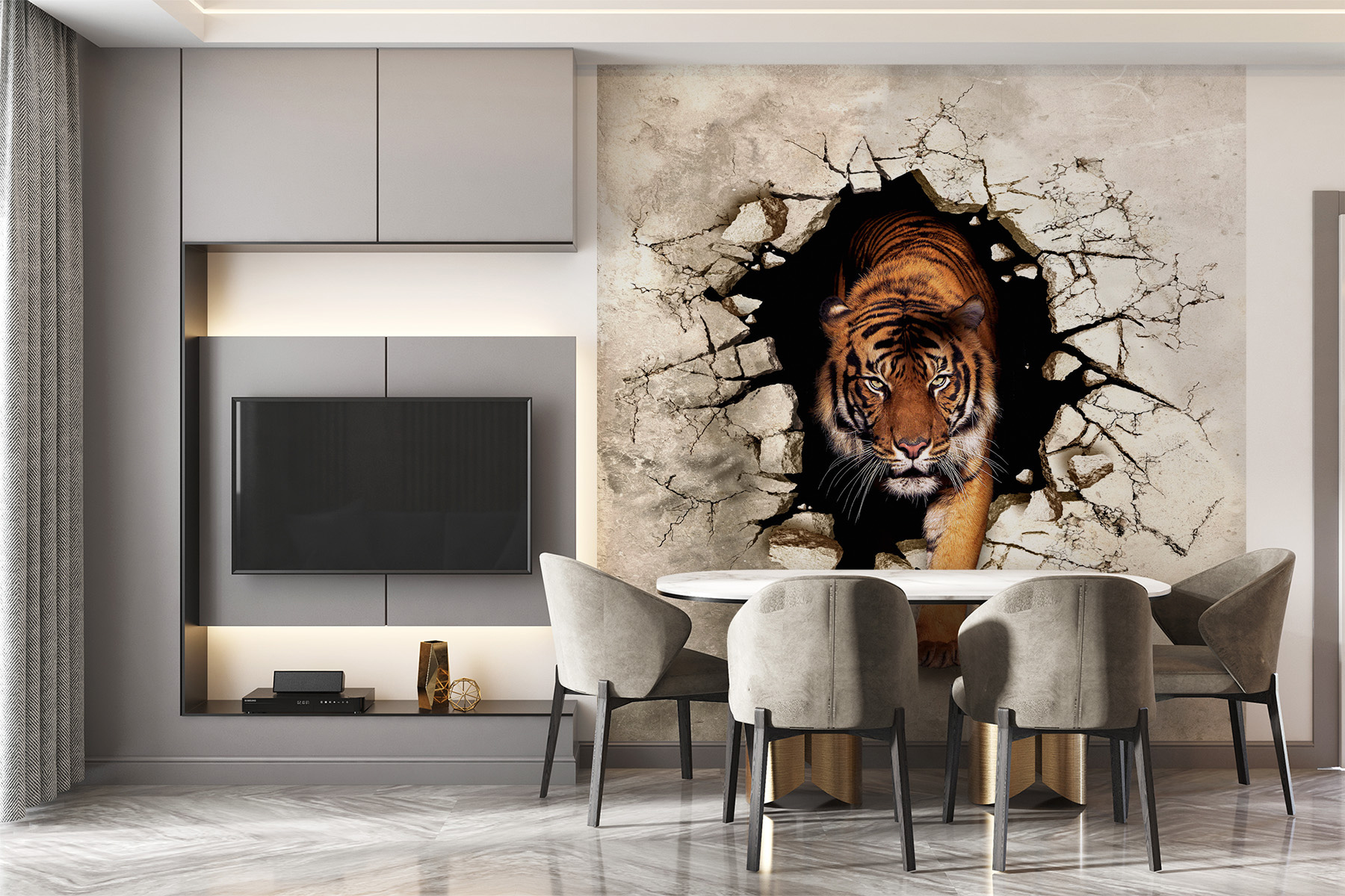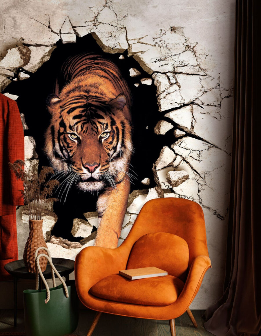 ¿Alguna vez has pensado en tener un tigre feroz atravesando tu pared? Este impresionante mural de un tigre emergiendo a través de una pared agrietada es perfecto si te gusta la decoración salvaje. Imagínatelo: entras en el salón y ahí está, un tigre saliendo con esa mirada intensa y cautivadora. Es como tener un trozo de selva en casa, atravesando el hormigón. Es dramático, llama la atención y, sinceramente, es emocionante. ¿Quién no quiere un poco de aventura en su espacio? Además, es un gran tema de conversación: ¡tus invitados no dejarán de hablar de ello! Añada un poco de rugido a la decoración de su habitación con este fascinante mural de pared en 3D. Créame, ¡le encantará lo atrevido que es!