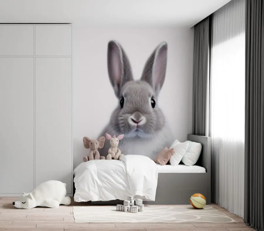 Añade una pizca de dulzura y un toque de encanto a cualquier habitación con este mural de pared que muestra un adorable conejito con el pelaje más suave que casi se puede sentir a través de la imagen. Es perfecto para la habitación de un niño: imagínese las risitas y las infinitas historias inspiradas por esta simpática criaturita. Sería como tener una mascota sin tener que limpiar. Su espacio se vuelve acogedor y acogedor al instante, convirtiéndolo en el telón de fondo perfecto para los recuerdos familiares. Además, ¿quién puede resistirse a esos ojazos y esas mejillas esponjosas? Es más que decoración; es un toque de alegría en tu pared.