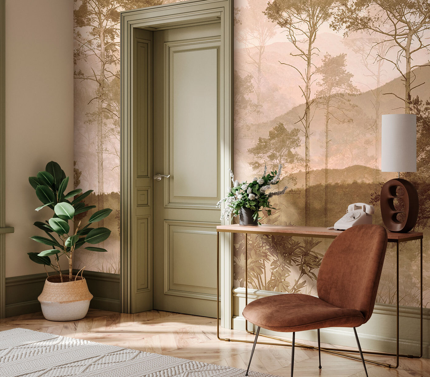Además, los tonos sutiles y el suave efecto de niebla la hacen versátil con cualquier estilo de decoración. Por lo tanto, no es solo un mural; es un refugio tranquilo que trae un poco de magia de la naturaleza a tu hogar. 🌲🗻