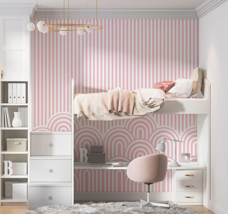 Créeme, este diseño cambia las reglas del juego: transforma las paredes lisas en un lienzo de alegría y elegancia. Tanto si quieres crear un look inspirado en un diseñador como si simplemente quieres que tu espacio parezca más tuyo, este mural es lo que necesitas. Así que añadamos un toque de rosa y un poco de sofisticación a rayas, porque la vida es demasiado corta para paredes aburridas, ¿verdad?