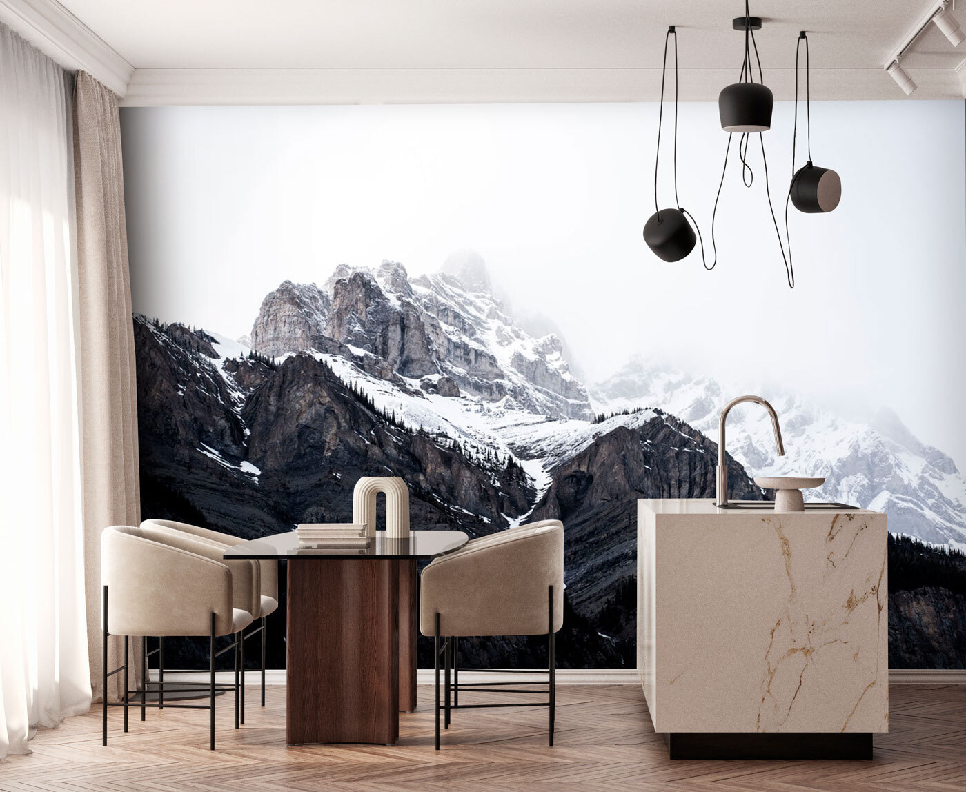 Coloca este mural en tu salón o dormitorio y, de repente, cada día te parecerá un poco más aventurero. Casi puedes sentir la brisa fresca y oír el suave crujido de la nieve bajo las botas. Además, ¿ese marcado contraste de roca oscura y escarpada contra la nieve blanca? Tan dramático como tranquilizador.