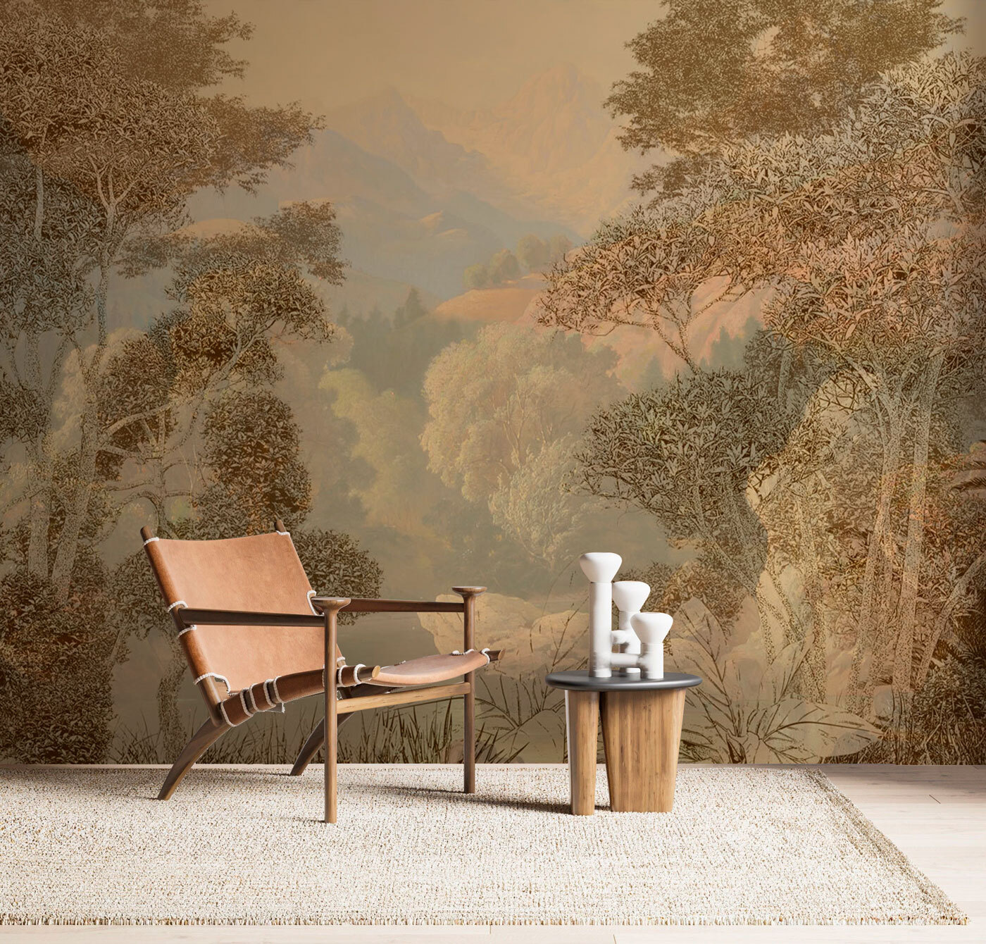 Imagine esto en su pared: “Árbol frente a una montaña”, un mural que susurra serenidad en su espacio. Con su exuberante follaje y su majestuoso telón de fondo, es como tener una ventana que se abre directamente a la calma misma. ¿Puedes sentir la brisa de la montaña? Perfecta para los amantes de la naturaleza o para cualquiera que quiera escapar del ajetreo y el bullicio, esta pieza encaja sin esfuerzo con las vibraciones tropicales o con un tema selvático relajado. Puede que tus amigos se queden boquiabiertos pensando que te has mudado a un paraíso escondido. Combina a la perfección con un rincón de lectura o de meditación. Ver esto a diario puede hacer que tus mañanas sean un poco más tranquilas y que tus noches sean un poco más apacibles. Y oye, a todos nos vendría bien un poco más de eso, ¿verdad?