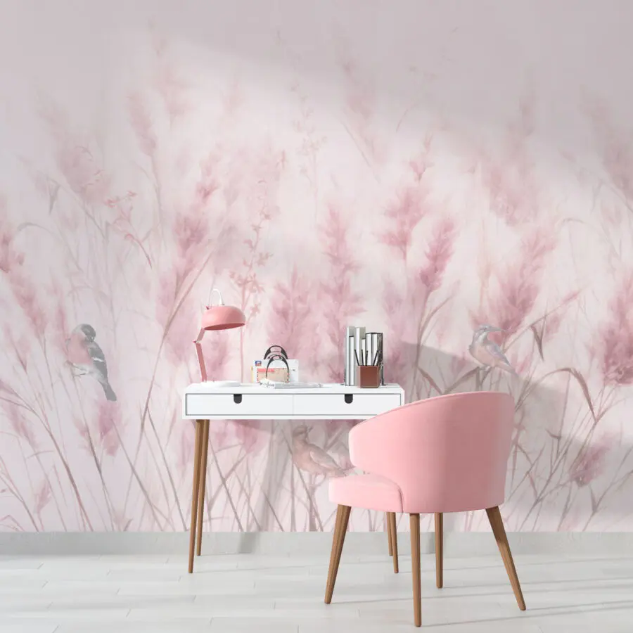 Imagínatelo en la pared: suaves hierbas rosas meciéndose suavemente, con encantadores pajaritos revoloteando. Es como llevar una serena pradera al amanecer a tu habitación. Este mural “Pájaros entre suave hierba rosa” es perfecto para la habitación de un niño, ya que le transmite un ambiente relajante y despierta su pequeña imaginación. Pero, sinceramente, quedaría genial en cualquier lugar donde quieras un toque de paz y naturaleza, como tu rincón de lectura o tu oficina.