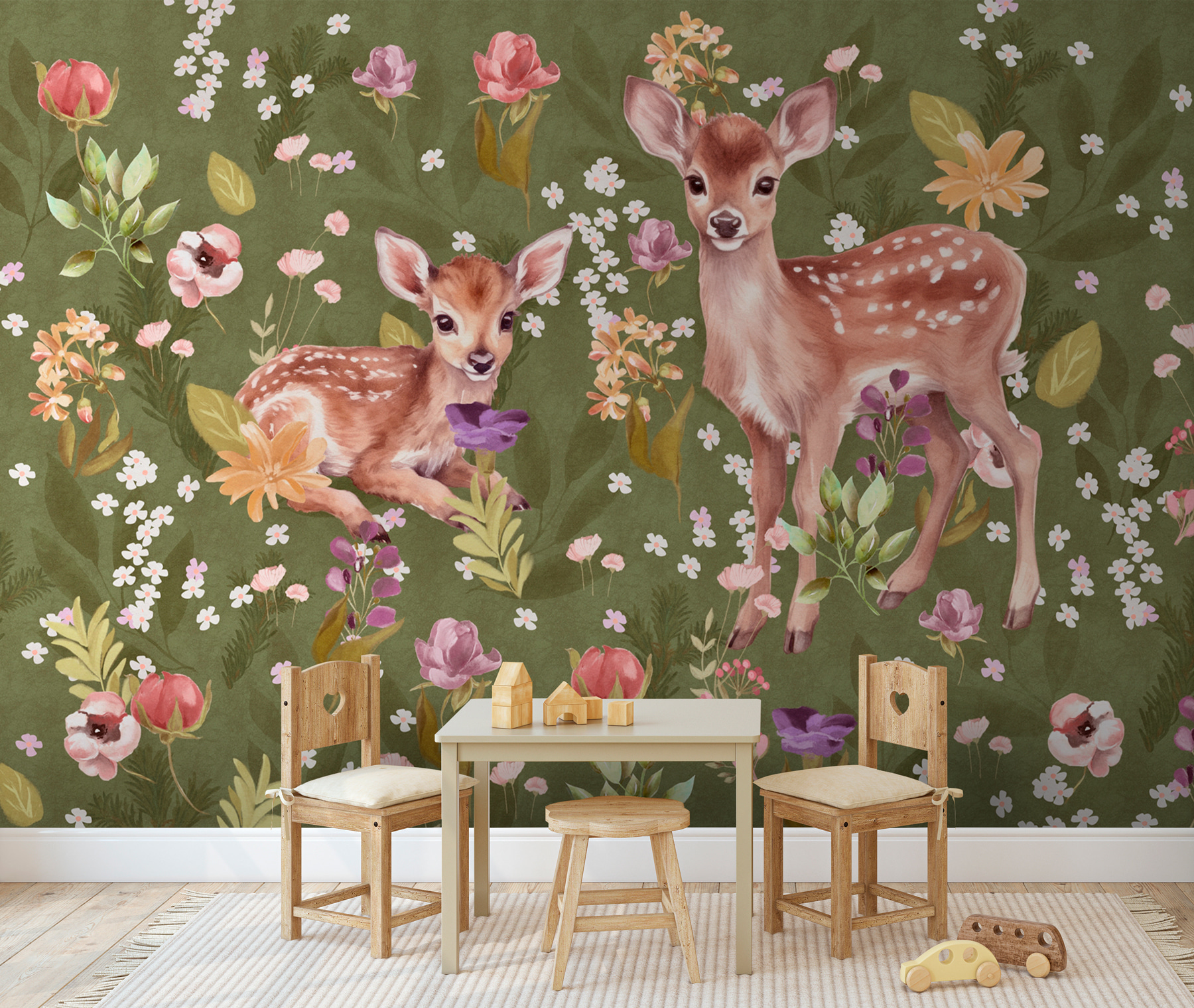 Transforme cualquier habitación en un refugio caprichoso con este impresionante mural de pared con encantadores ciervos cabriolas entre flores vibrantes. Imagina relajarte en un espacio donde la naturaleza cobra vida en tus paredes. Los suaves colores y las dulces criaturitas crean una atmósfera acogedora, perfecta para despertar la imaginación de los niños o proporcionar a los adultos un apacible retiro. Es como llevar un trozo de bosque encantado al interior. Ya sea en una habitación infantil, en un cuarto de juegos o simplemente en un rincón acogedor, este mural seguro que calentará corazones e inspirará sonrisas. Es como una pequeña ventana a la naturaleza, ¡sólo que sin bichos!