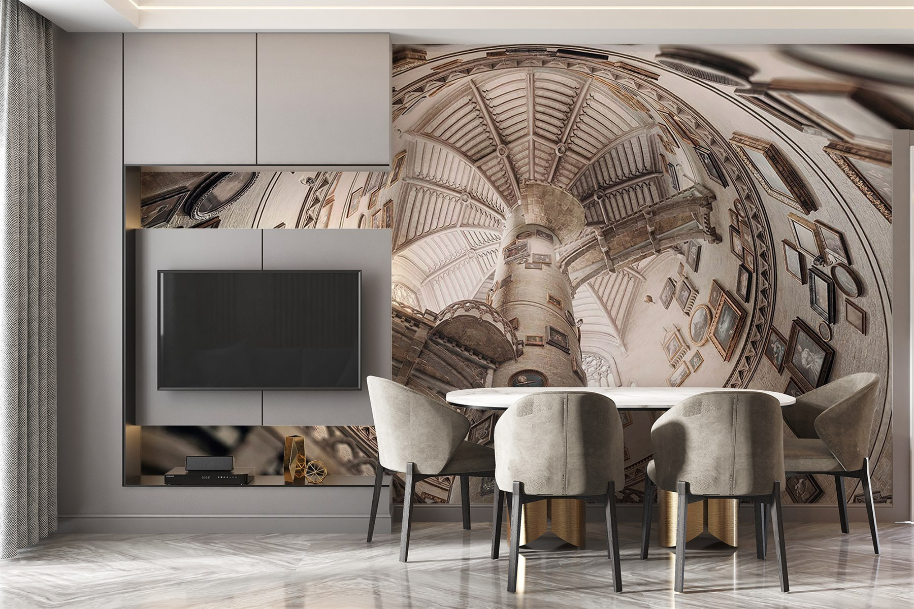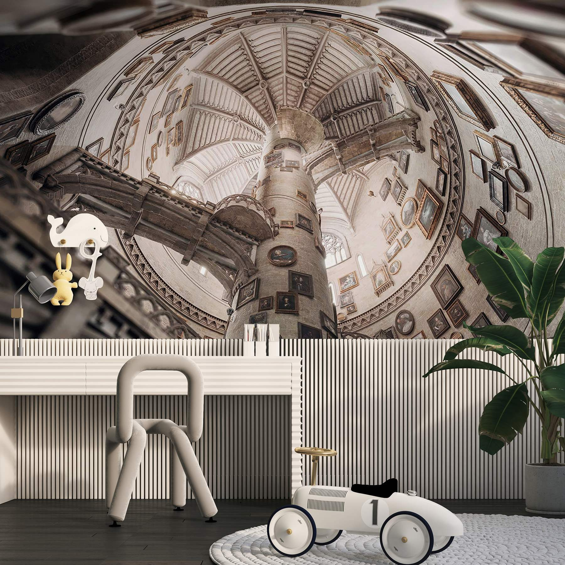 Adéntrese en un mundo caprichoso con el mural “Edificio circular con varias escaleras”. Imagínese mirando hacia arriba y perdiéndose en la encantadora espiral, donde cada escalera conduce a nuevos descubrimientos. El encanto de los retratos de época en las paredes añade un toque extravagante, haciéndole sentir como en su propia aventura de viaje en el tiempo. Imagínate tomando el té con tus amigos, rodeados de este impresionante telón de fondo, y hablando de arte o de ese extraño vídeo de gatos de la semana pasada. Este mural no es sólo decoración; es una invitación a dar rienda suelta a la imaginación y crear tus propias historias. Perfecto para añadir un toque de carácter a cualquier habitación, ¡sin duda convertirá tus paredes en la estrella del espectáculo!