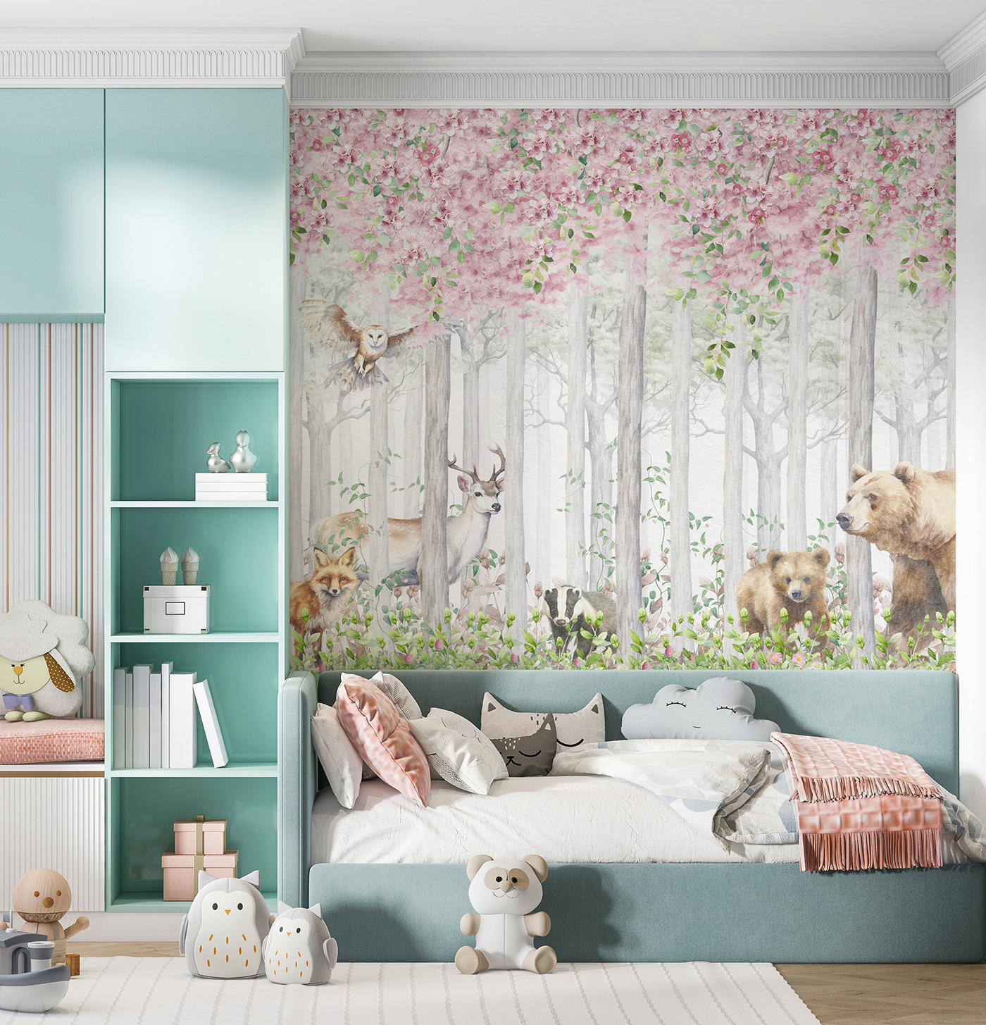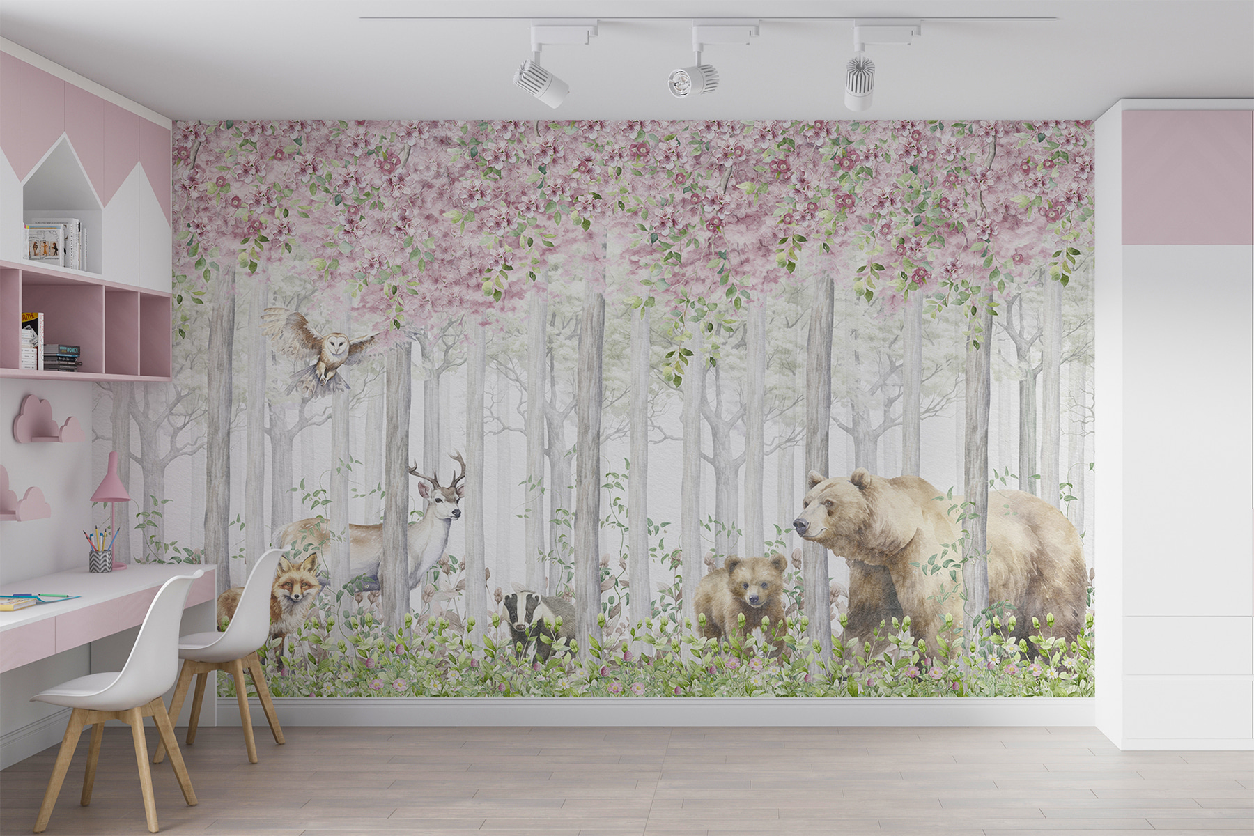 Eche un vistazo a este encantador mural de pared, “Acuarela de un oso”, perfecto para cualquiera que adore un toque de magia en su decoración. Con un acogedor oso rodeado de amigos del bosque y flores florecientes, aporta un suave encanto boscoso a cualquier habitación. Imagina que entras en tu salón y sientes que estás entrando en un bosque sereno y encantado. Es como un abrazo de la naturaleza.