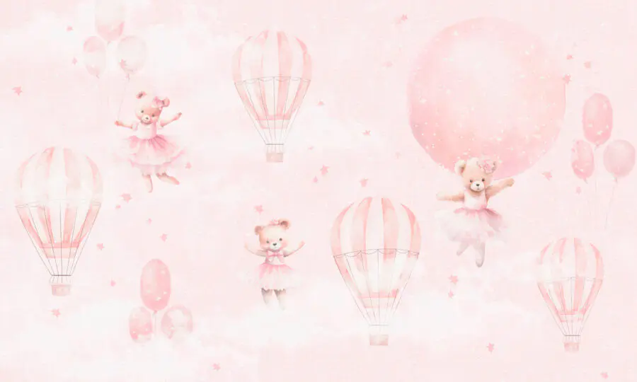 Mezcla de fantasía y ambiente acogedor, este mural despierta la imaginación cada vez que lo miras. Es perfecto para evocar esos cuentos de antes de dormir en los que los ositos de peluche participan en números de circo y vuelan en globos aerostáticos hasta tierras lejanas. Además, ¿recuerdas los clásicos debates sobre los globos aerostáticos frente a los cohetes? Pues aquí tienes un mural que lo resuelve con un toque de osito de peluche.