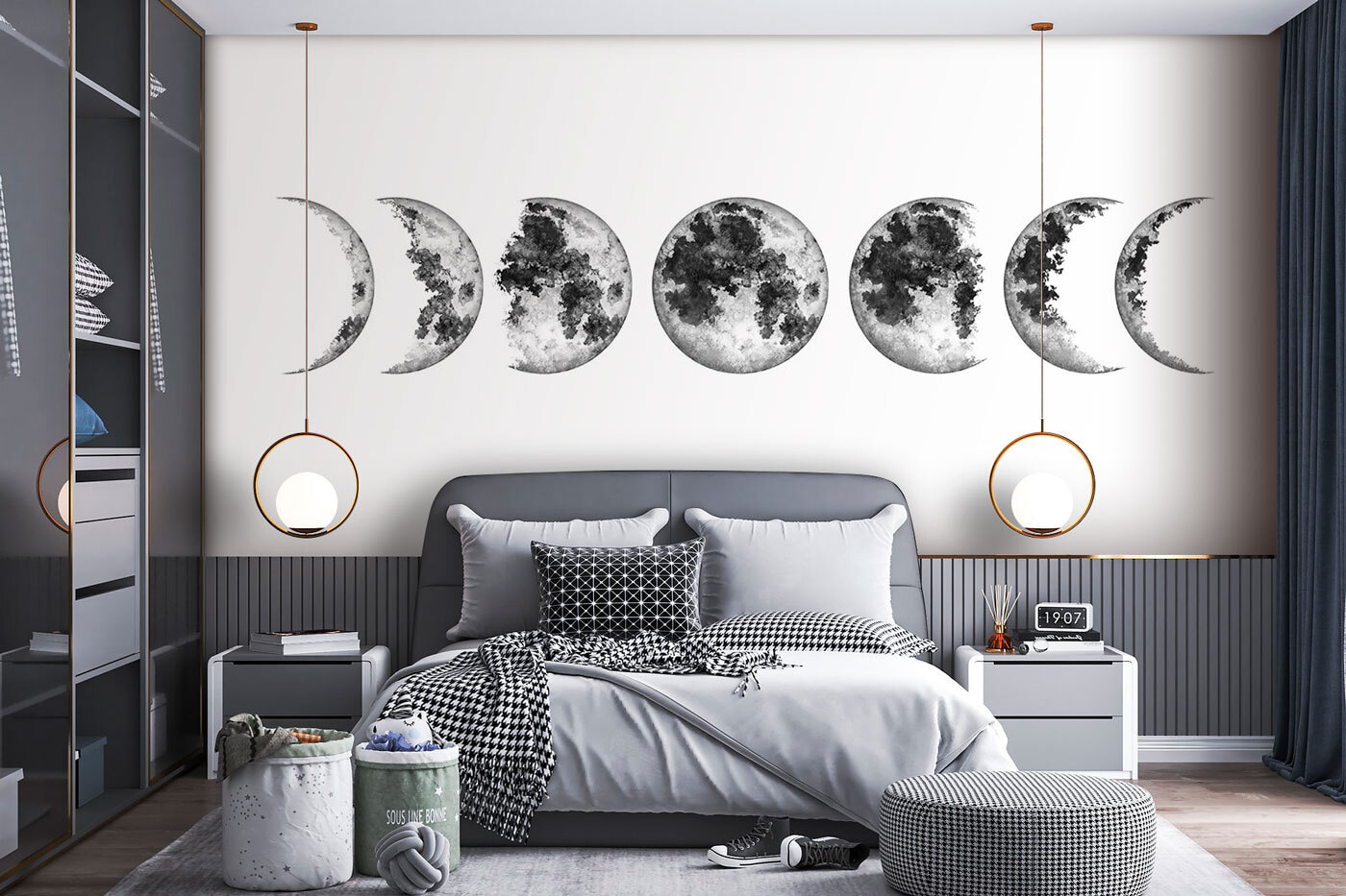 Transforme una habitación con el cautivador mural “Fila de Fases de la Luna”. Es como tener un cielo nocturno en casa, aportando un ambiente tranquilo que es perfecto para los niños y cualquier persona joven de corazón. Imagina esas suaves lunas crecientes vigilando a los soñadores por la noche, despertando la curiosidad por el cosmos: ¿a quién no le gusta un poco de magia estrellada? Es un gran tema de conversación y perfecto para salas de juegos o dormitorios. Además, da a las paredes un toque de ensueño, perfecto para inspirar aventuras en los más pequeños. Ilumina la imaginación y deja que la luna sea su guía.