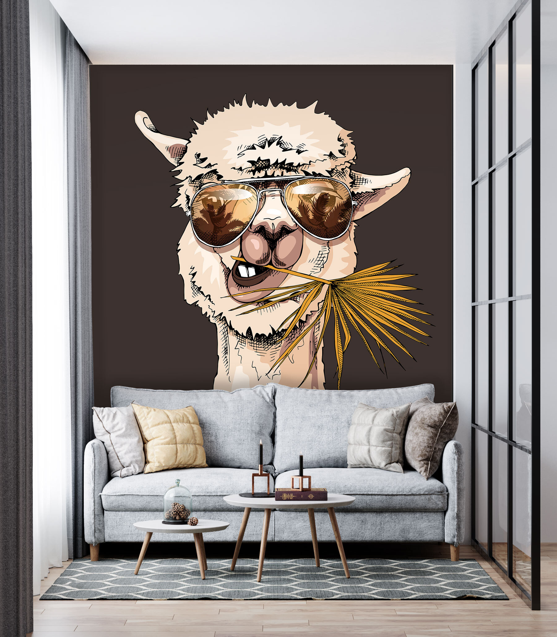 Echa un vistazo a este fabuloso mural de pared llamado “¡Saludo de alpaca chill con gafas de sol!”. Si alguna vez has querido un ambiente extravagante y fresco en tu pared, aquí lo tienes. Imagina a esta alpaca relajada, con sus gafas de sol puestas y una ramita en la boca, saludándote todos los días… ¡un subidón de ánimo instantáneo! Perfecto para habitaciones infantiles, pero sinceramente, ¿por qué no en el salón? Es como si la alpaca dijera “¡Hola!” cada vez que pasas por delante, recordándote que te lo tomes con calma. Deja que este peludo amigo añada un toque divertido a tu decoración con su encanto ultralaxo.