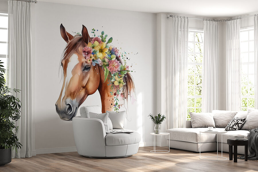 Imagínese entrar en una habitación y ser recibido por un majestuoso caballo adornado con flores vibrantes. Eso es exactamente lo que hace este mural de pared: ¡convierte una pared lisa en una deliciosa sorpresa! Es perfecto para los amantes de los animales, los niños o cualquiera que desee añadir un toque de fantasía a su espacio. Los colores son tan vivos que prácticamente saltan de la pared. Imagínese el deleite de su pequeño o la sonrisa de sus invitados al ver este impresionante semental.