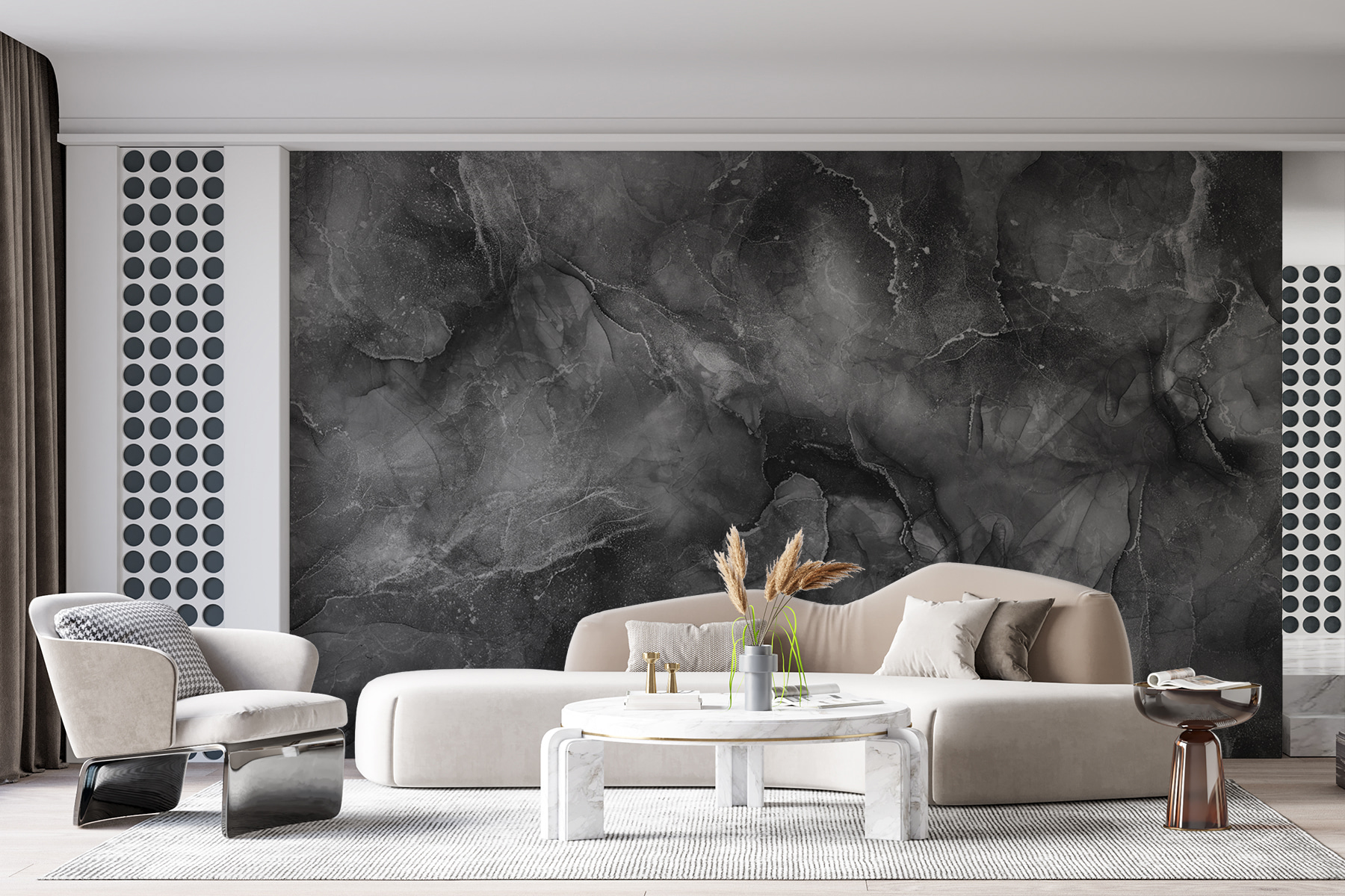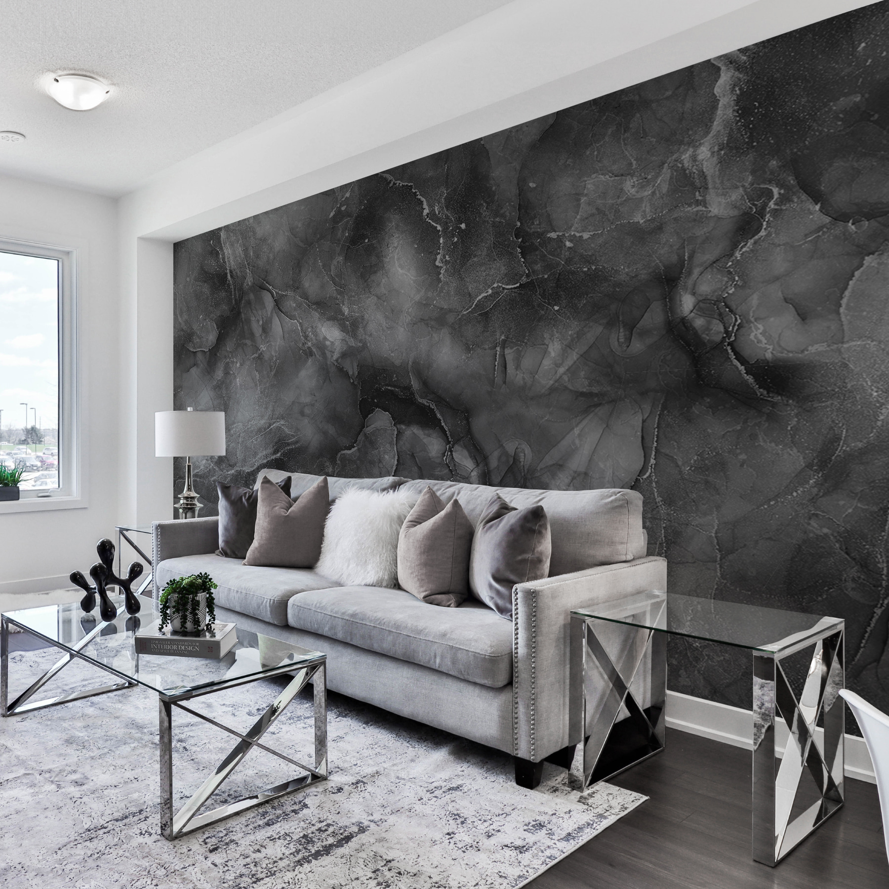 Transforme cualquier espacio en una acogedora escapada con este mural de pared con una impresionante textura de mármol y motivos abstractos. Imagínese entrar en una habitación que susurre sofisticación sin necesidad de una elegante invitación a cenar. Los remolinos danzan en ricos grises y negros, por lo que es fácil de combinar con casi cualquier esquema de color, ya sea con colores vibrantes o tonos apagados.