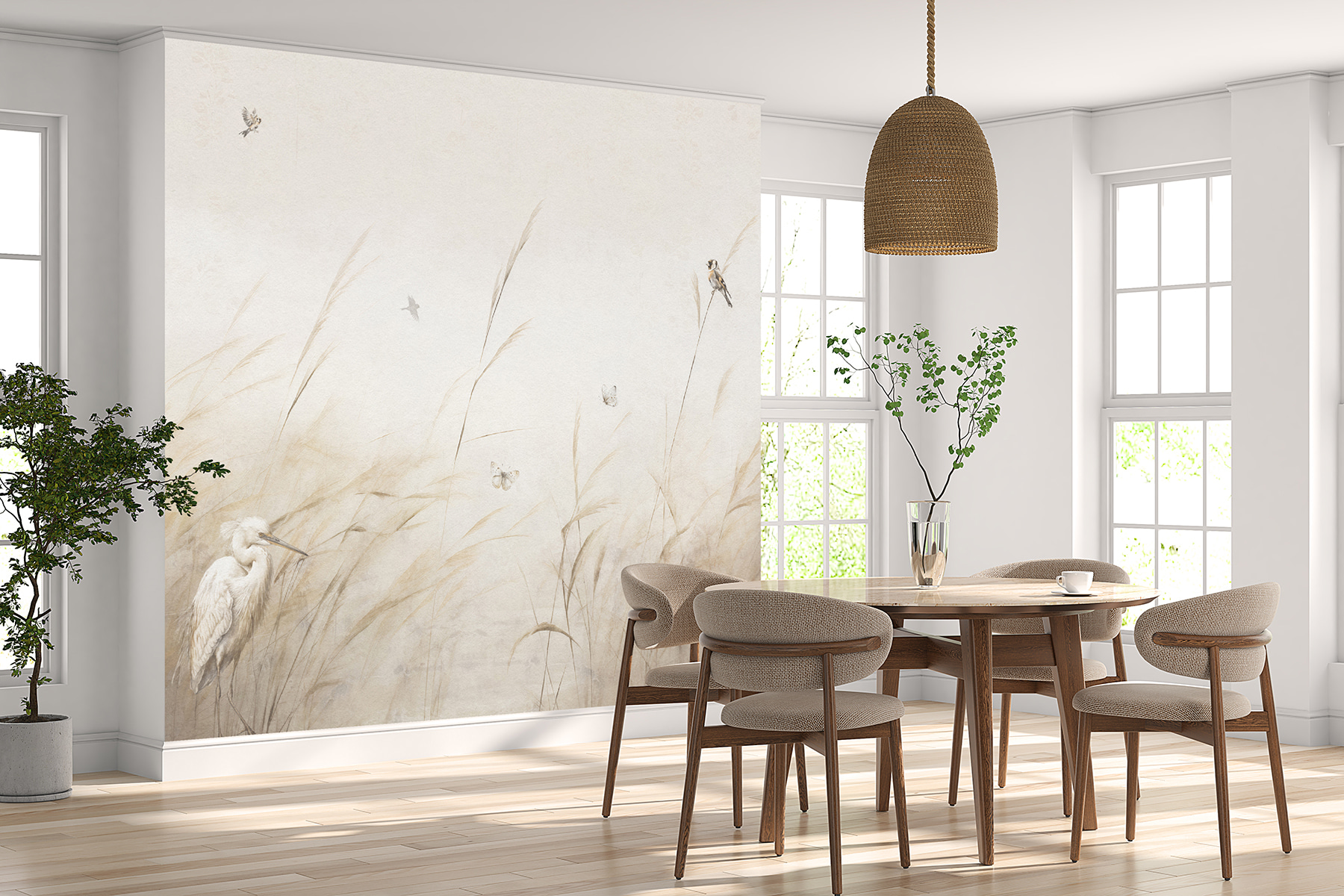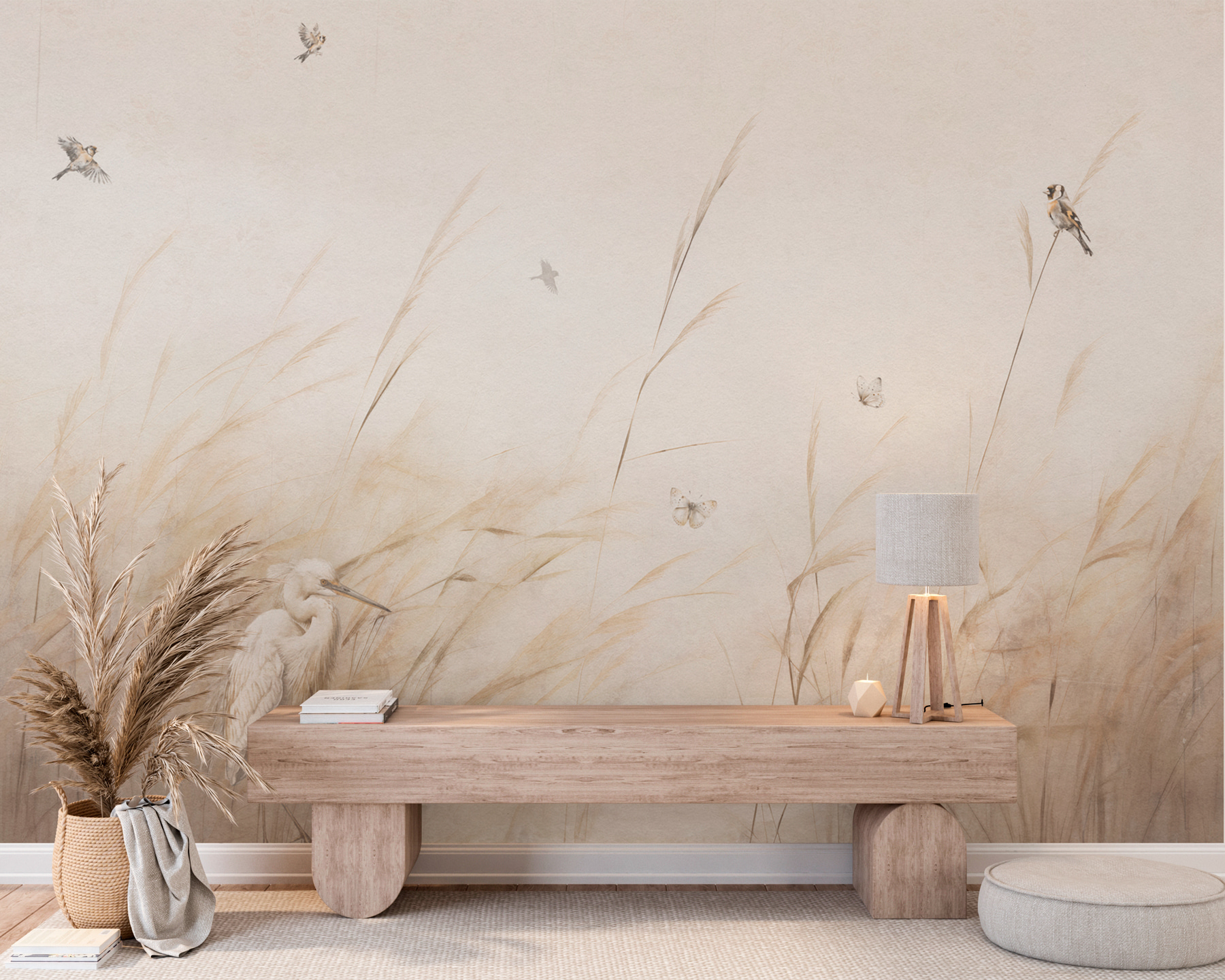¿Conoces esa sensación cuando sales temprano por la mañana y el mundo se está despertando? Eso es exactamente lo que este mural “Pájaro volando en el aire” aporta a su espacio. Con delicados pájaros revoloteando sobre suaves hierbas, es como capturar y congelar un momento tranquilo en la naturaleza. Imagínatelo en tu salón: vibraciones zen instantáneas. Los tonos apagados lo hacen versátil y se adapta sin esfuerzo a diferentes decoraciones. Tanto si está tomando un café como relajándose después de un largo día, este mural le envuelve en un abrazo tranquilo y sereno, creando una sensación de santuario en su propia casa. Perfecto para quienes encuentran la paz en la sencillez de la naturaleza.