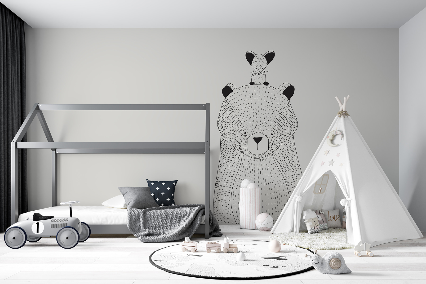 Este estampado es tan bonito como relajante, con líneas sencillas que le dan un toque moderno a la vez que mantienen un aspecto dulce y accesible. Es ideal para guarderías, habitaciones de niños pequeños y cualquier espacio en el que quieras poner un poco de magia. La suave expresión del oso es como un cálido y acogedor abrazo en forma de mural.