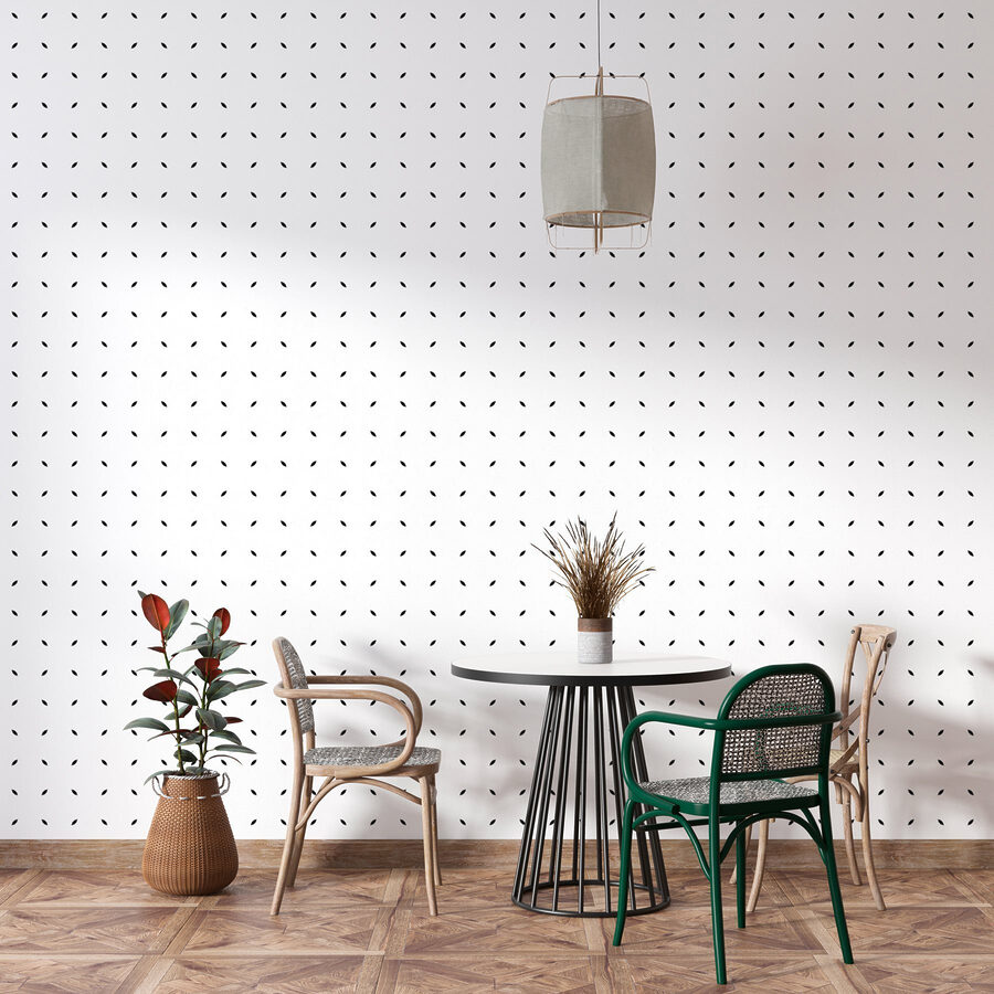 Aquí hay algo para los fans de la decoración minimalista: “Murales de pared Fondo blanco con puntos negros”. Es lo que no sabías que le faltaba a tu salón. Imagínatelo: un elegante fondo blanco salpicado de diminutos puntos negros, como el cielo nocturno salpicado de estrellas, pero sin dramatismo. Se trata de un ambiente moderno y abstracto. Perfectamente versátil, tanto si buscas un estilo contemporáneo como un toque más geométrico.
