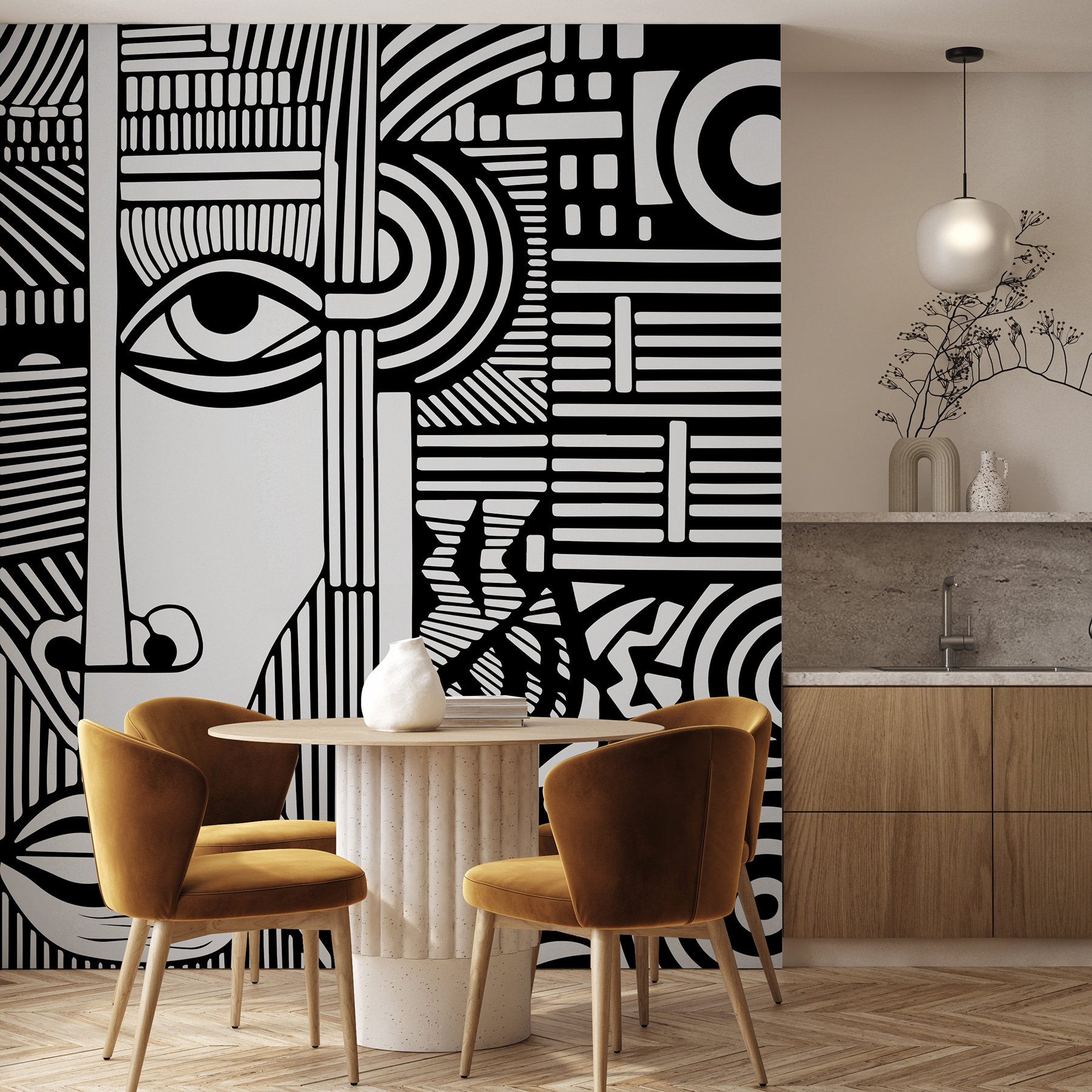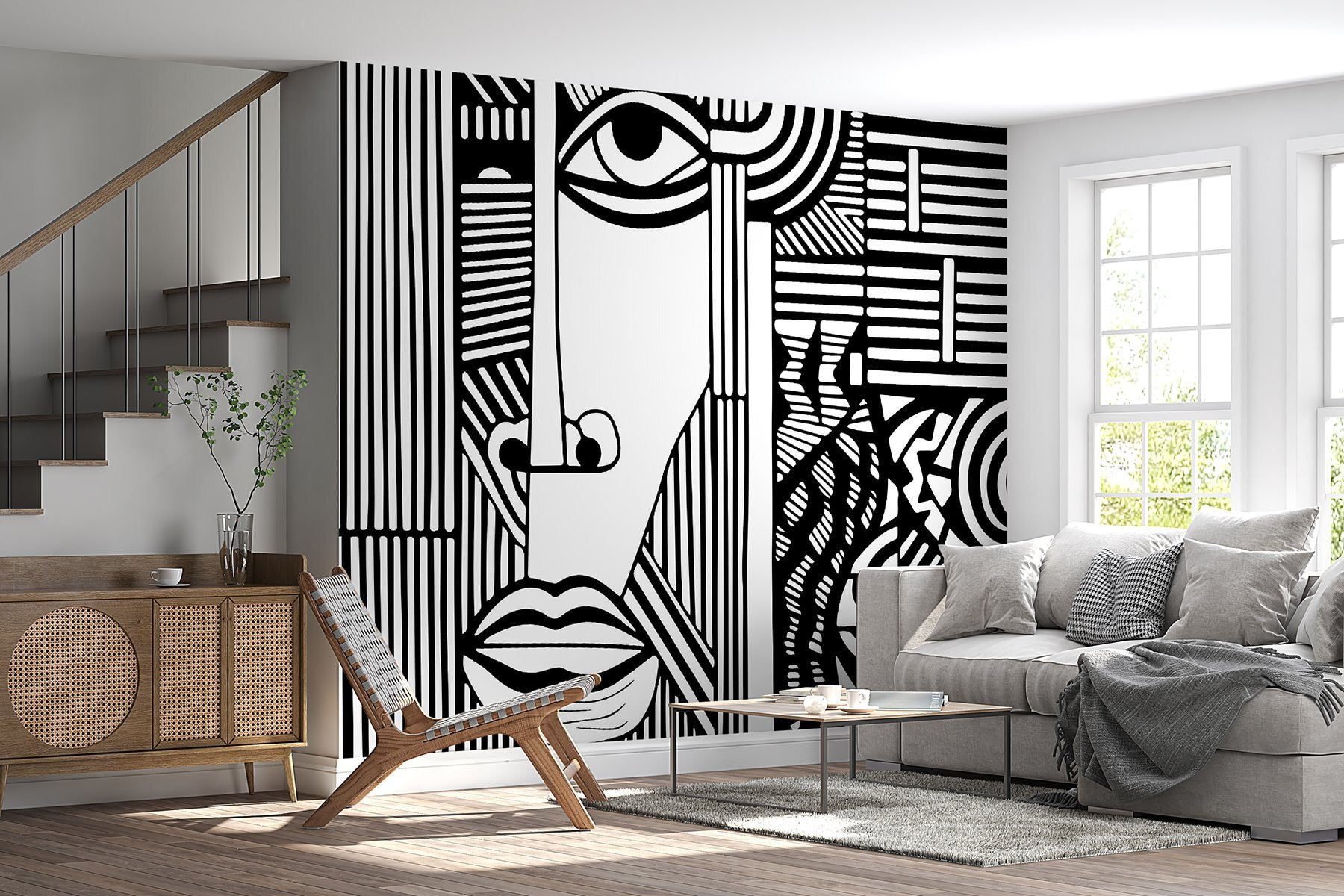 Esto no es sólo un mural de pared, es una pieza de arte moderno que puede transformar totalmente su espacio. Con sus intrincadas líneas en blanco y negro formando un rostro abstracto, es como tener una obra maestra inspirada en Picasso en su pared, justo en su salón. Los atrevidos dibujos y los llamativos contrastes hacen que sea imposible de ignorar.