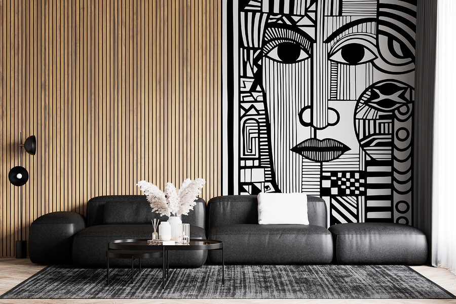 Este mural es simplemente… poético. Imagina esta cara dibujada en blanco y negro en tu pared: es algo más que arte. Es como tener una pieza intemporal de creatividad saludándote cada día. Llamativo y atrevido, este diseño podría transformar totalmente tu habitación en un refugio artístico. Las líneas y las formas son tan dinámicas que sus ojos podrían pasear por él durante horas, como si se perdiera en una buena historia. Perfecto para los que aprecian las cosas buenas y divertidas de la vida. Imagínatelo: pones esto en tu salón y, de repente, tu espacio susurra sofisticación con un toque de espíritu rebelde. Además, es ideal para entablar conversación. Tanto si organizas una cena elegante como una reunión informal, este mural te cubrirá las espaldas. Tu casa está a punto de volverse mucho más cool.