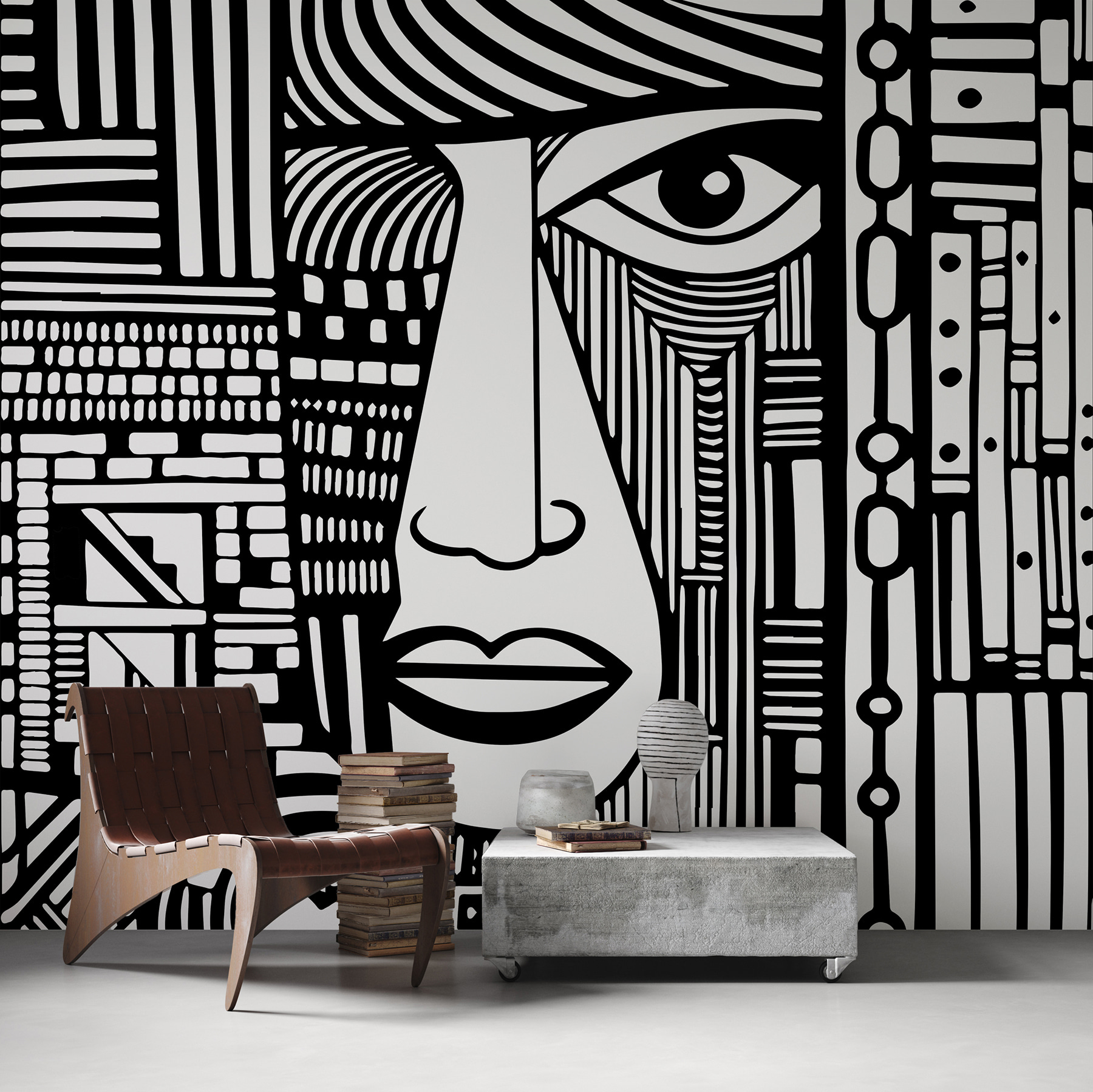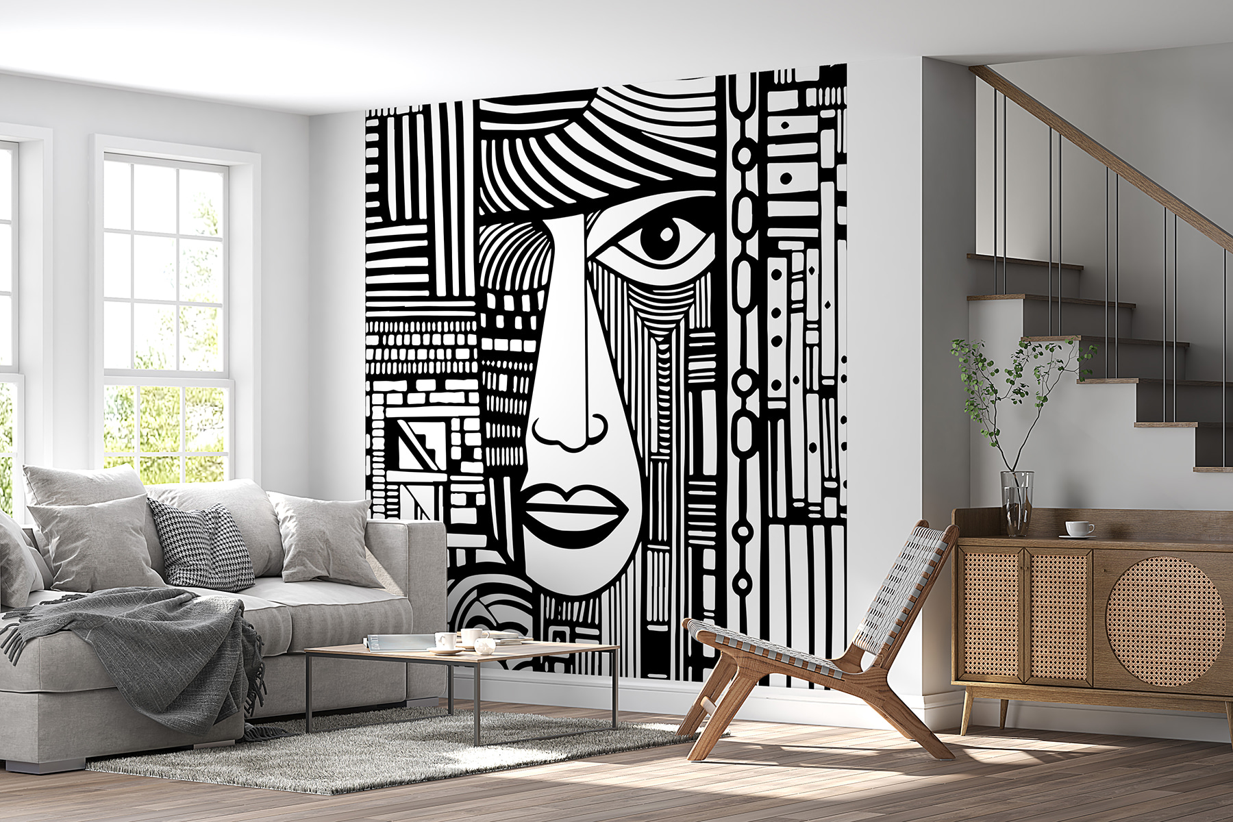 ¿Alguna vez ha querido un arte que le agarre por los hombros y le haga fijarse en él? Entonces este mural “Dibujo de una cara en blanco y negro” es para ti. Es perfecto para quienes adoran los papeles pintados de diseño pero también desean algo un poco… atrevido. Las líneas atrevidas y los contrastes llamativos te atraen, es casi como si la cara mantuviera una conversación profunda contigo. Imagina que entras en tu habitación después de un largo día y al instante te sientes un poco más sofisticado, como si hubieras entrado en una galería de arte moderno. Este mural añade curiosidad y una pizca de misterio a cualquier espacio. Además, es genial, ¿verdad?