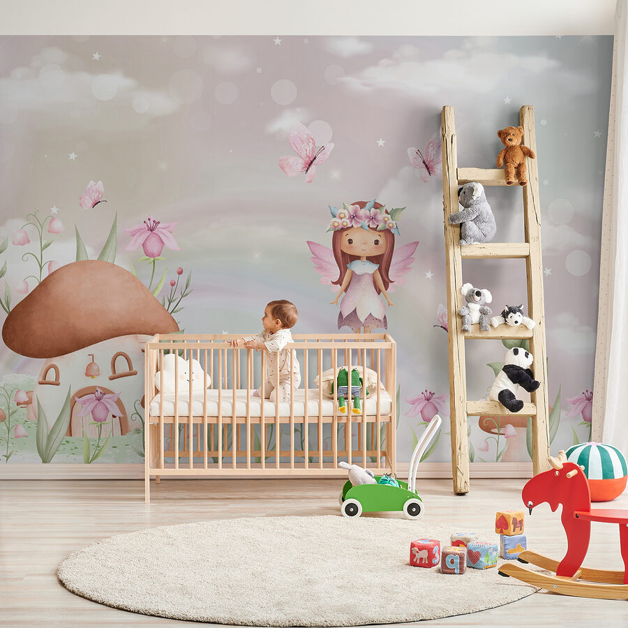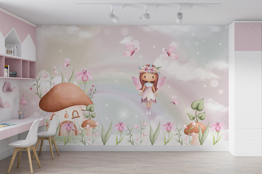 Transforma el espacio de los más pequeños con este encantador mural de pared en el que aparece una encantadora hada bailando entre flores y mariposas. Imagínatelo: la luz del sol entra a raudales, proyectando suaves sombras sobre pétalos juguetones y una acogedora casa de setas que despierta la imaginación. A los niños les encantará perderse en esta mágica escena y soñar con historias de hadas y aventuras en el bosque. Es como dar vida a un cuento de hadas directamente en la pared, perfecto para mentes curiosas o incluso para un acogedor rincón de lectura. ¿Quién no sonreiría al pasar ante semejante capricho? ¡Deja que la magia se despliegue!