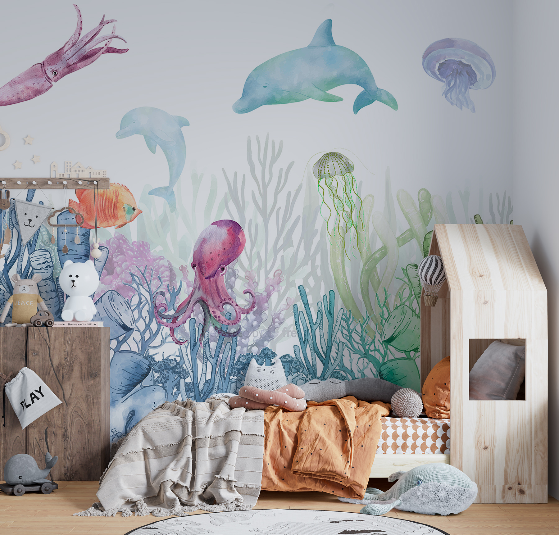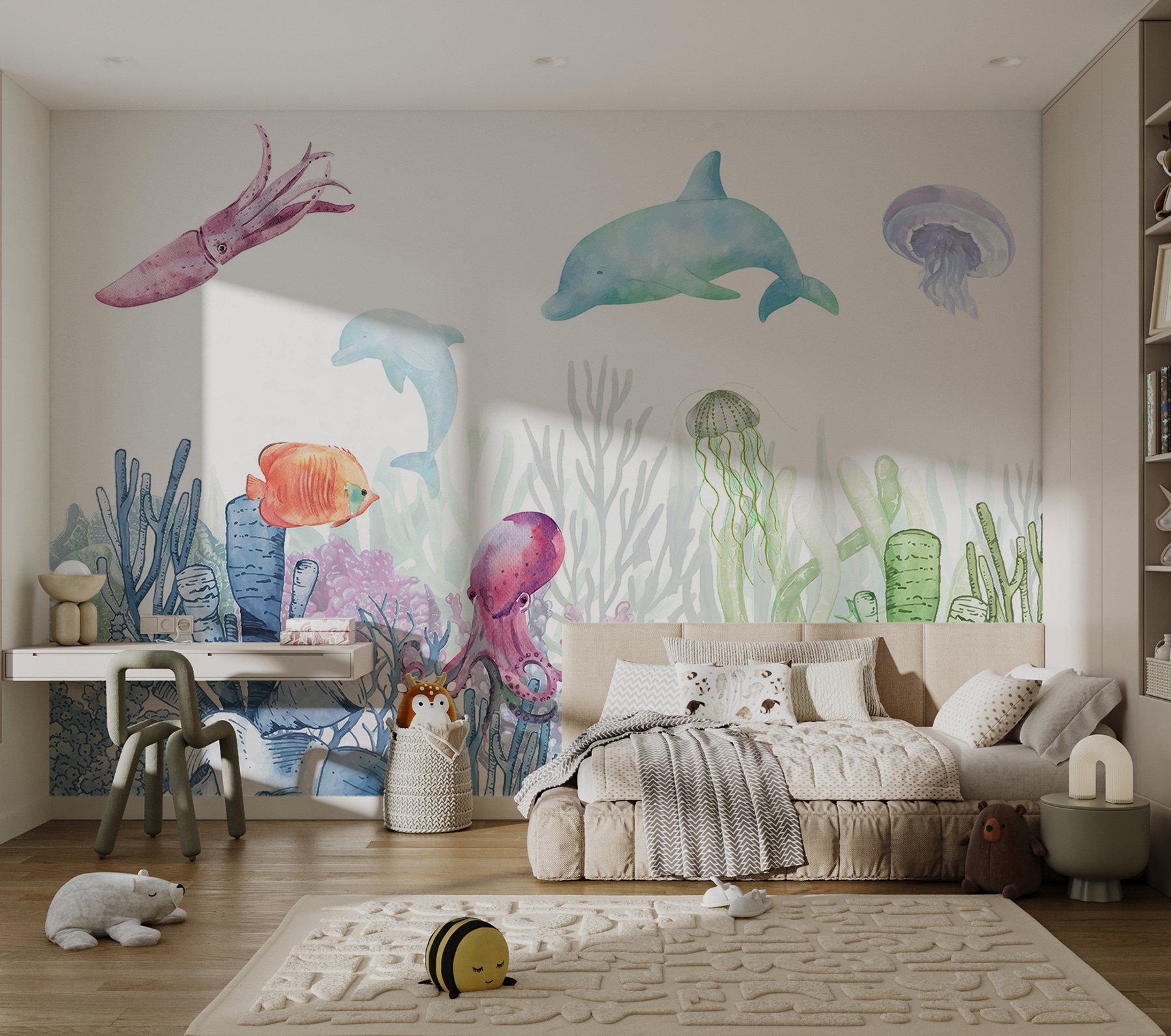 Ideal para hacer que cualquier espacio parezca un poco más caprichoso y mucho más especial. Sumérgete y deja que las maravillas submarinas inunden tus paredes.