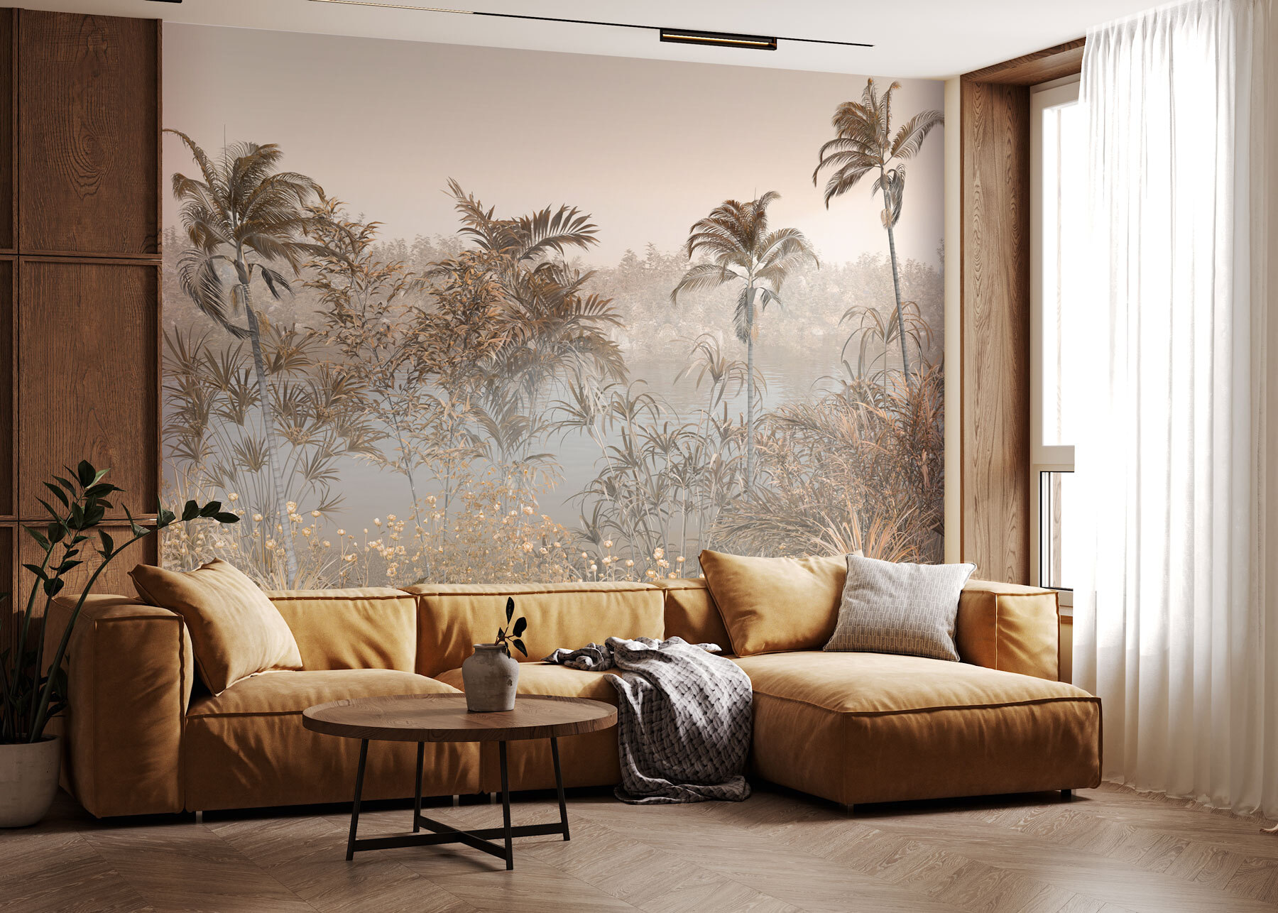 Imagínese que cada vez que entra en la habitación le transportan a un sereno oasis junto al agua. Eso es exactamente lo que consigue con los “Murales de pared Palmera junto a una masa de agua”. Es como beber agua de coco con un poco de contemplación tranquila. Perfecto para llevar la madre naturaleza al interior, este mural es todo vibraciones calmantes: palmeras meciéndose suavemente, una masa de agua reflejando el cielo y un entorno tranquilo que invita a soñar despierto. Está en el punto óptimo de la decoración inspirada en la naturaleza y una pequeña escapada para los sentidos. Imagina entrar en un espacio en el que siempre te sientas fresco y ligero, incluso en los días más estresantes. Y si entrecierras los ojos, quizá oigas el susurro de las hojas de las palmeras y sientas una brisa fresca.