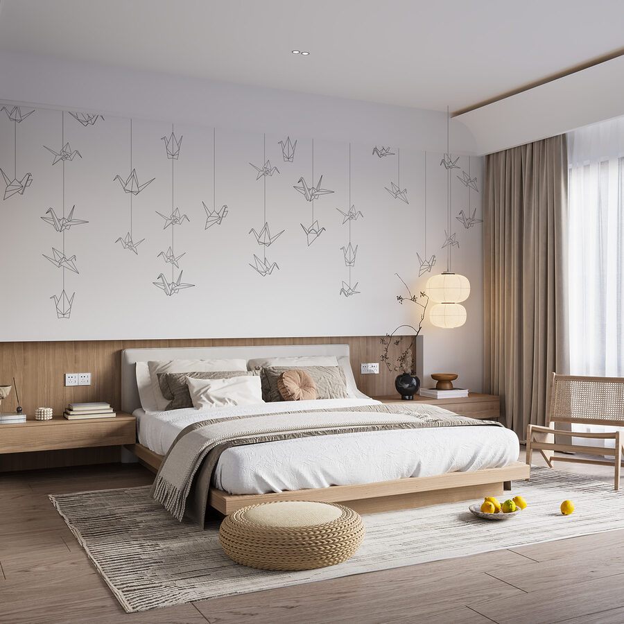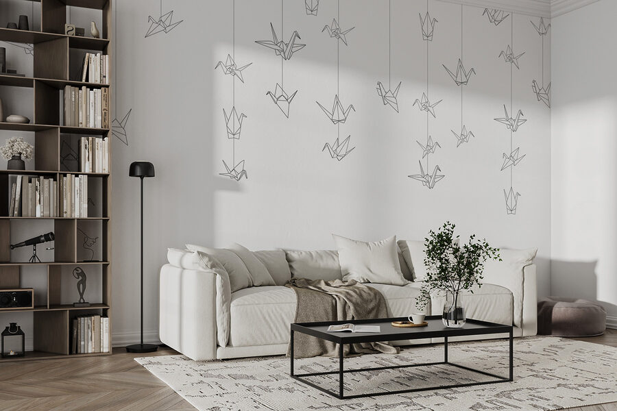 ¿Has pensado alguna vez en dar un toque artístico a tus paredes con el mínimo esfuerzo? Echa un vistazo a este mural de pájaros en blanco y negro. Es como tener un trozo de tu cuaderno de bocetos favorito ampliado a tamaño real. Las líneas sencillas le dan un aire elegante y moderno. Imagínatelo en tu salón o en tu lugar de trabajo: el tipo de pieza que te hace tomarte un minuto para respirar y relajarte. Además, esas grullas de papel colgando suavemente, casi como si estuvieran volando, tienen algo muy relajante. Es la mezcla perfecta de arte y zen. Si te gusta la decoración única que despierta la alegría (sí, un momento Marie Kondo), este mural te va a encantar.